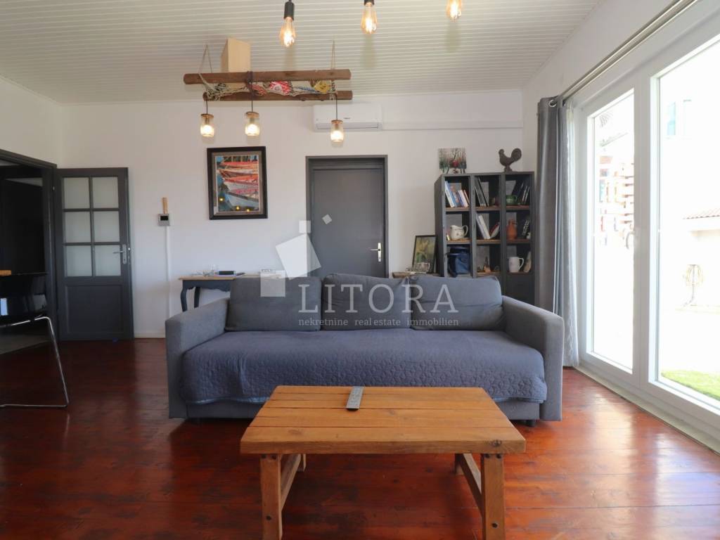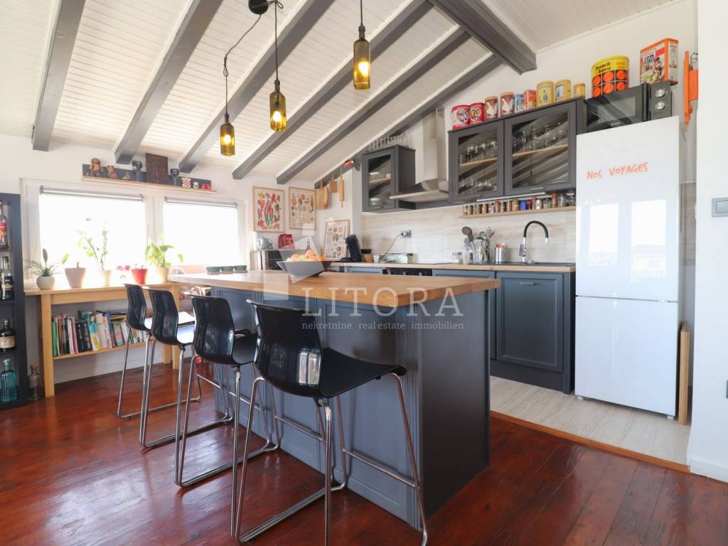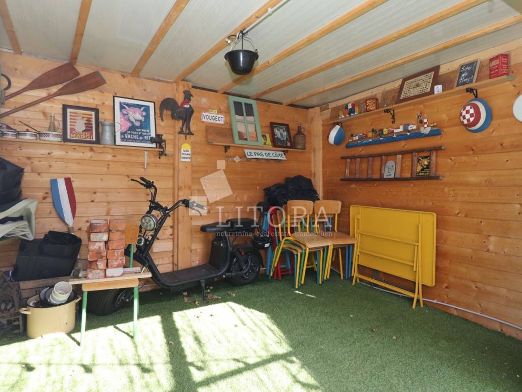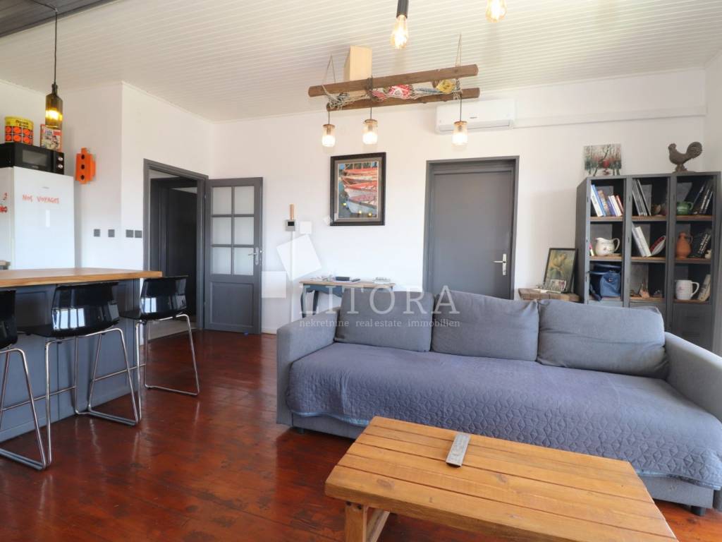 Vodice, centar – trosobni apartman s pogledom na more, velika terasa od 29,39 m² te dvorište s parkirnim prostorom za dva vozila Apartman se nalazi u centru grada Vodica, smješten na zadnjoj etaži – u visokom potkrovlju troetažne kuće u kojoj se nalaze ukupno tri stambene jedinice. Apartman ima ukupnu korisnu površinu od 140,89 m². Dvorište površine 108 m² dijelom je popločano te ima parkirni prostor za dva vozila, kao i zatvoreni dvorišni dio u kojem se nalaze drvena kućica koja služi kao ljetna kuhinja, alatnica i radionica. U dvorištu se također nalazi mali toalet. Apartman ima vlastiti stubišni prostor, odvojen od ostatka kuće, koji vodi od prizemlja do potkrovlja. Sam apartman ima površinu od 99,67 m² i sastoji se od hodnika, prostrane kupaonice s praonicom, tri spavaće sobe te prostranog dnevnog boravka s otvorenom kuhinjom. Iz dnevnog boravka izlazi se na veliku terasu od 29,39 m², orijentiranu na južnu stranu, s pogledom na more i grad Vodice. Apartman je opremljen klima-uređajem te se prodaje potpuno namješten, pri čemu je sav namještaj uključen u cijenu nekretnine. Udaljenost do plaže Vruje iznosi 850 m, dok je centar grada udaljen svega 300 m.