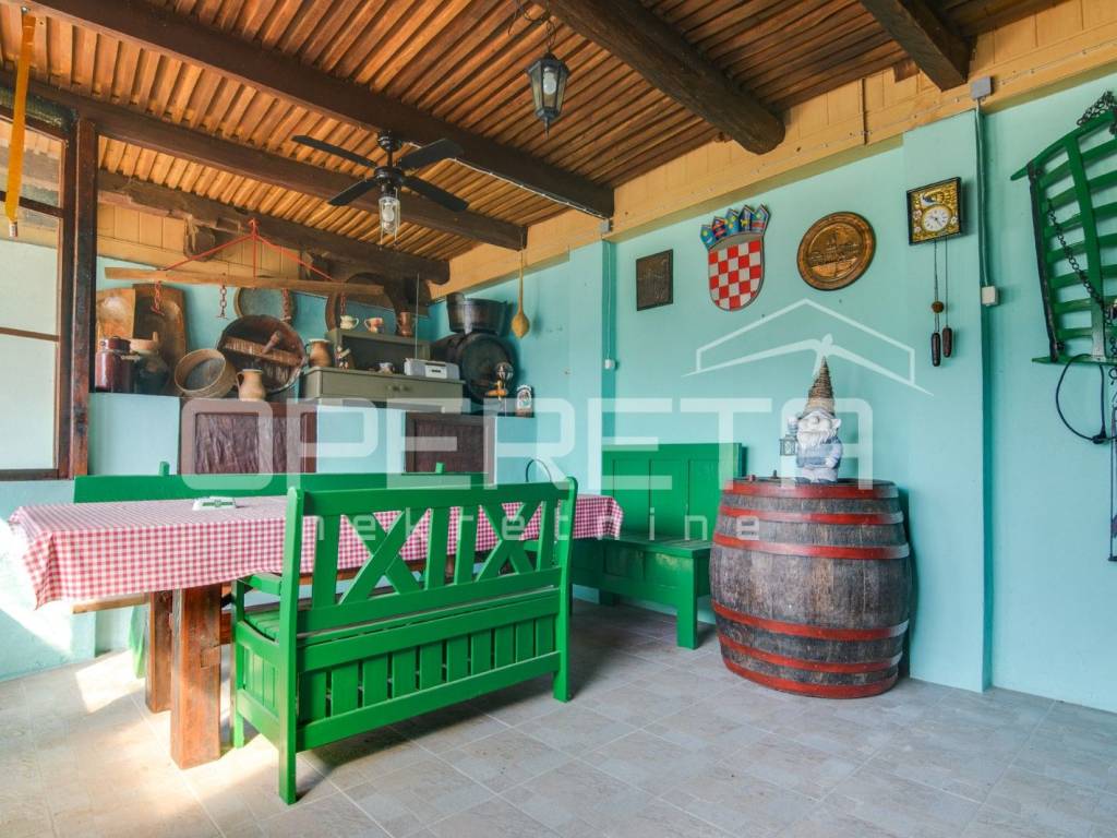 Kuća ima 95m2 stambenog prostora i oko 150 m2 pomoćnih prostorija.