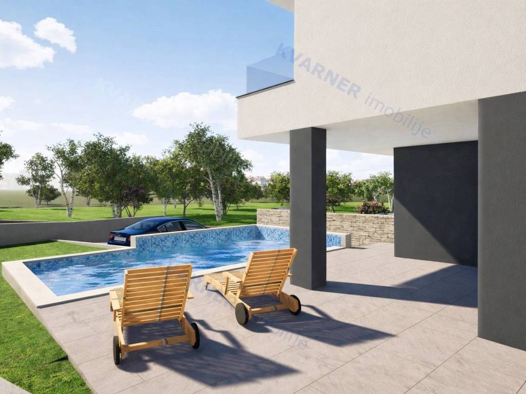 Na lijepo uređenoj okućnici površine oko 200 m² nalazi se bazen sa sunčalištem te dva parkirna mjesta.
