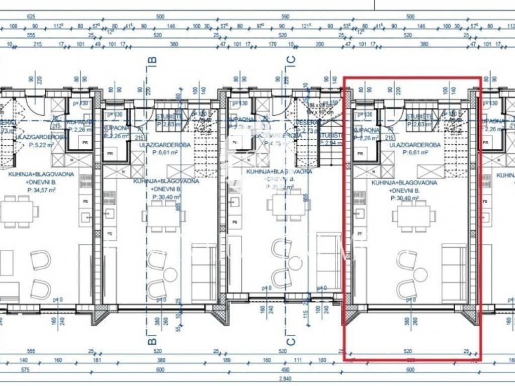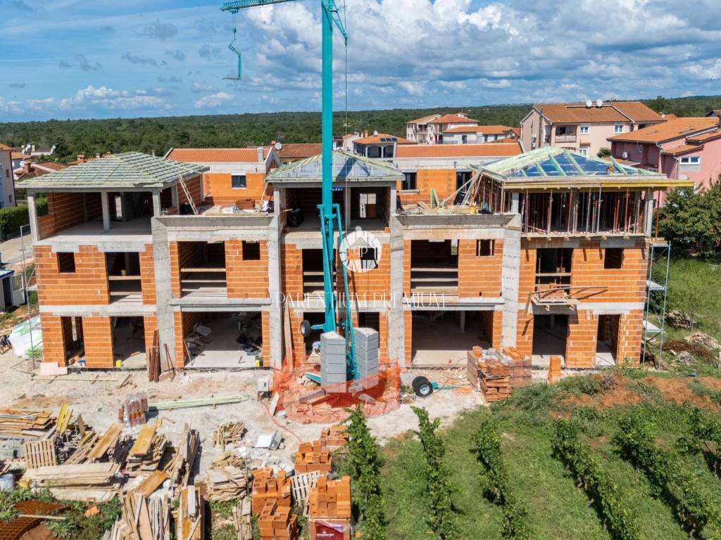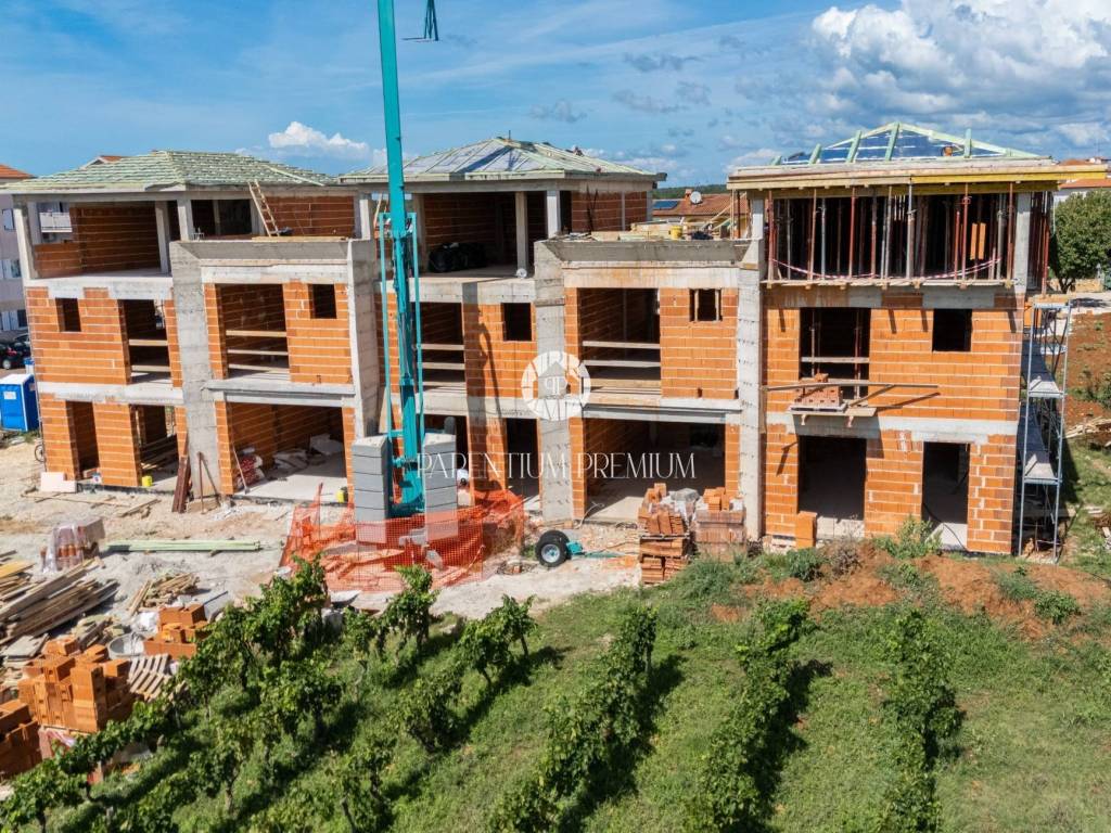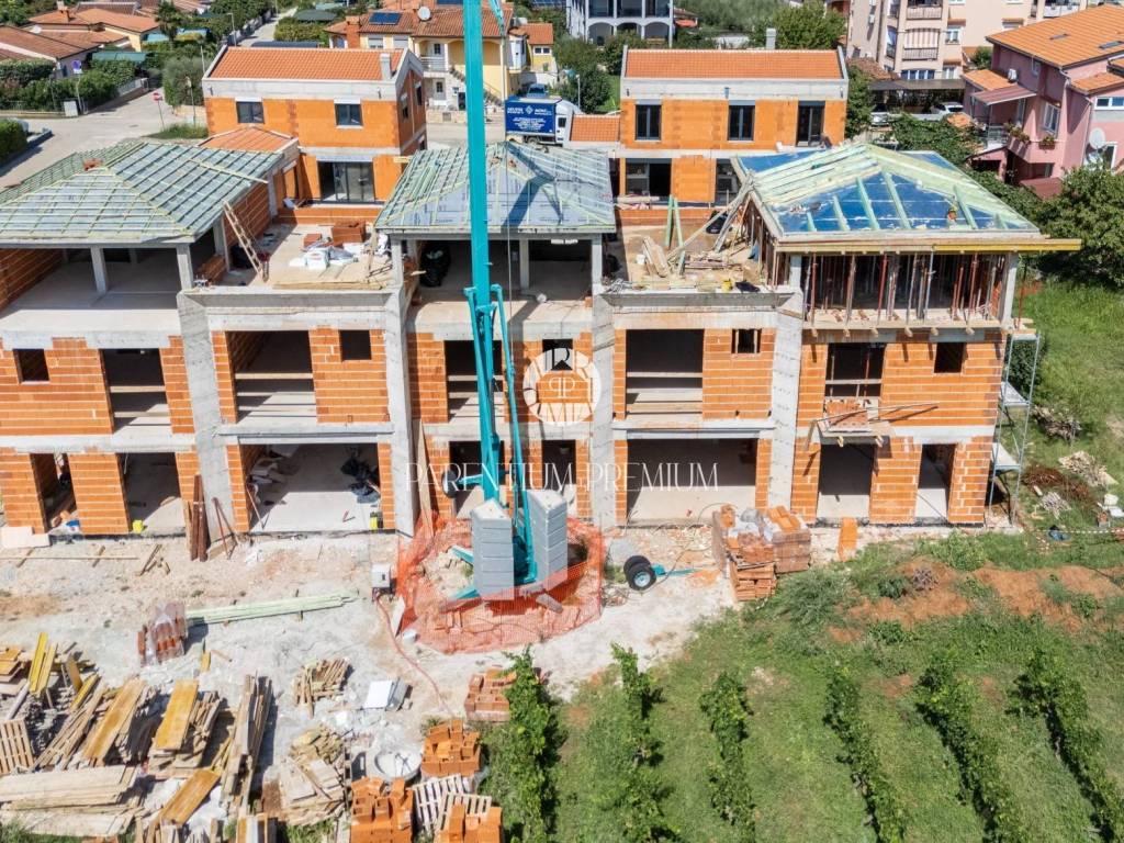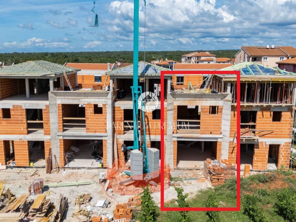Kuća u nizu na atraktivnoj lokaciji, 2km od centra Poreča i mora. Kuća ima dvije etaže ukupne površine 82 m2. Prizemlje se sastoji od ulaza/garderobe, vešeraja, WC-a sa priključkom za perilicu rublja, velikog dnevnog boravka sa kuhinjom i blagovaonicom po open space konceptu sa izlazom u vrt. Stubištem se dolazi na prvi kat gdje se nalazi hodnik, dvije spavaće sobe, svaka sa vlastitom kupaonicom. Kuća će imati u svim prostorijama postavljeno električno podno grijanje, a klima uređaji će biti u dnevnom boravku i spavaćim sobama. Kuća će imati oko 42m2 okućnice i jedno parkirno mjesto. Početkom 2025. godine započinje izgradnja, dok je planirani završetak u proljeće 2026. godine. Dok je kuća u izgradnji kupac si može sam birati matrijal za uređenje unutrašnjosti u određenom budžetu. Ova nekretnina je idealno rješenje stambenog pitanja ili kao investicija. ID: 1881_0315