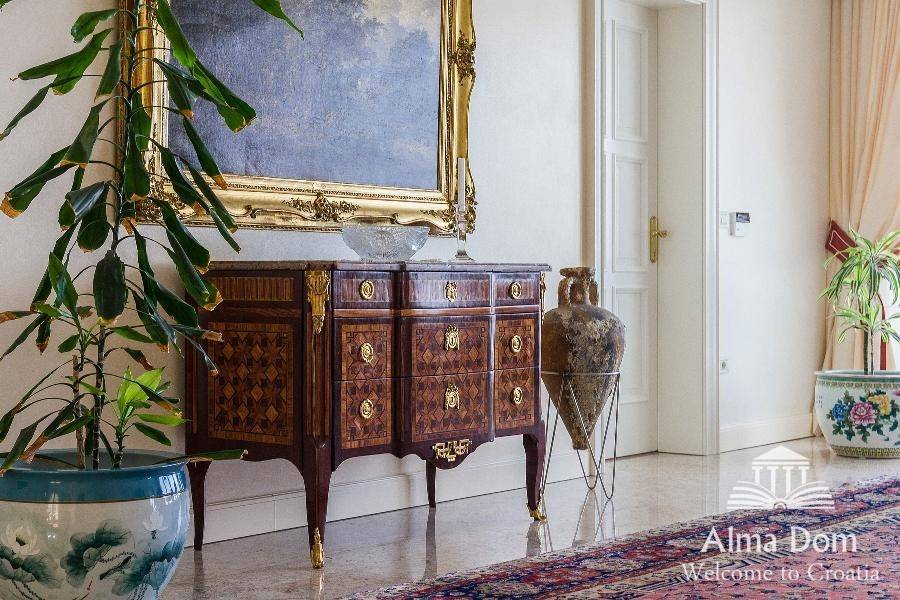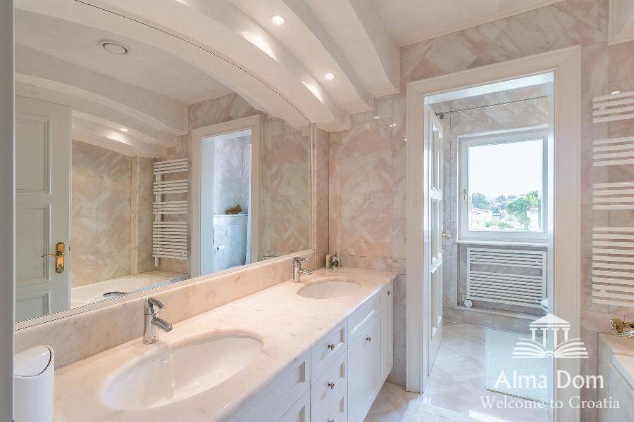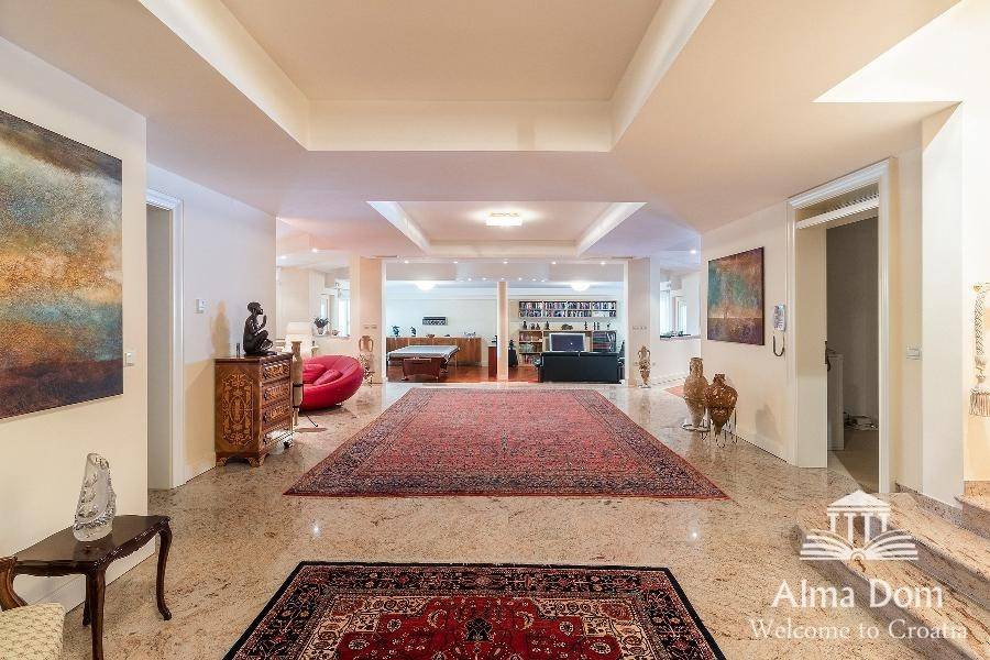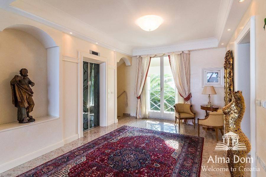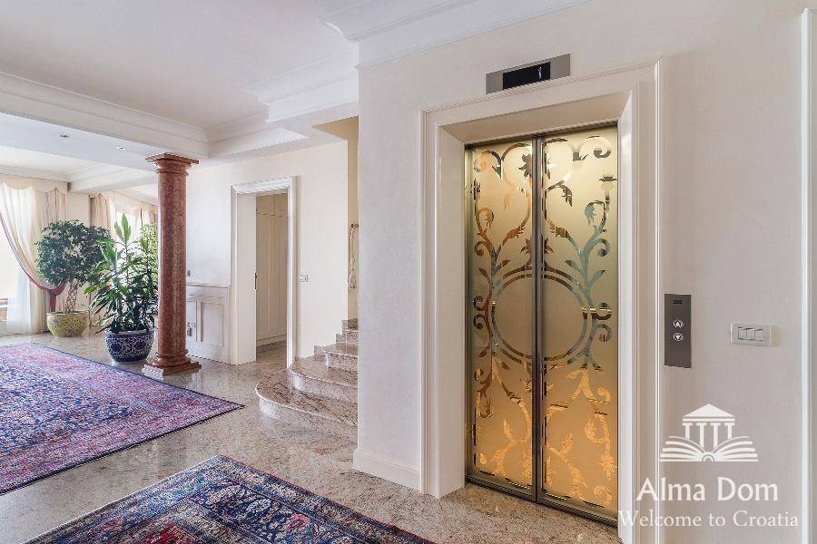 Ova prekrasna vila od 1000 m2 nudi prekrasan panoramski pogled na slovensku i talijansku obalu, kao i na austrijske Alpe. Vila je građena od visokokvalitetnih materijala poput mramora i granita. Ova izvanredna nekretnina sastoji se od tri prostrane spavaće sobe s vlastitim kupaonicama. Svaka spavaća soba opremljena je televizijom Bang & Olufsen, a dnevni boravak opremljen je najvećim televizorom ove marke, 103 inča. Osim toga, nudi izvrsne sadržaje za rekreaciju, uključujući grijani bazen s višestrukim osvjetljenjem u boji, privatnu teretanu, četiri jacuzzija, saunu i sobu za zabavu s biljarom, stolnim tenisom i stolnim nogometom. Tri etaže su prikladno povezane unutarnjim dizalom. Kako bi upotpunili ponudu, nekretnina također ima vlastiti veliki vinski podrum za degustaciju ili jednostavno za trenutak opuštanja.