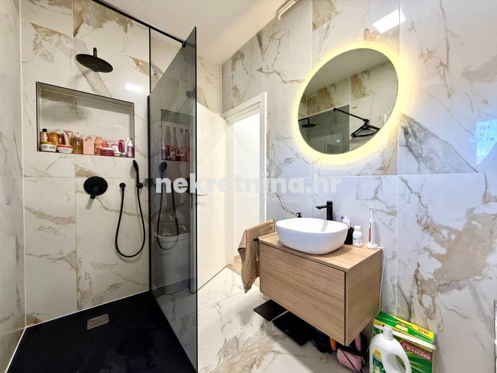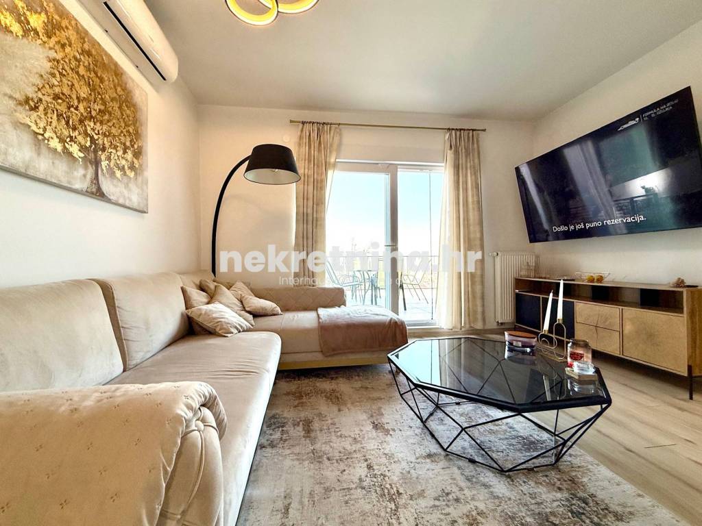 Nekretnina je potpuno namještena i uređena kvalitetnim materijalima, a zahvaljujući velikim otvorima i dobroj orijentaciji stan je vrlo svijetao i ugodan za boravak.