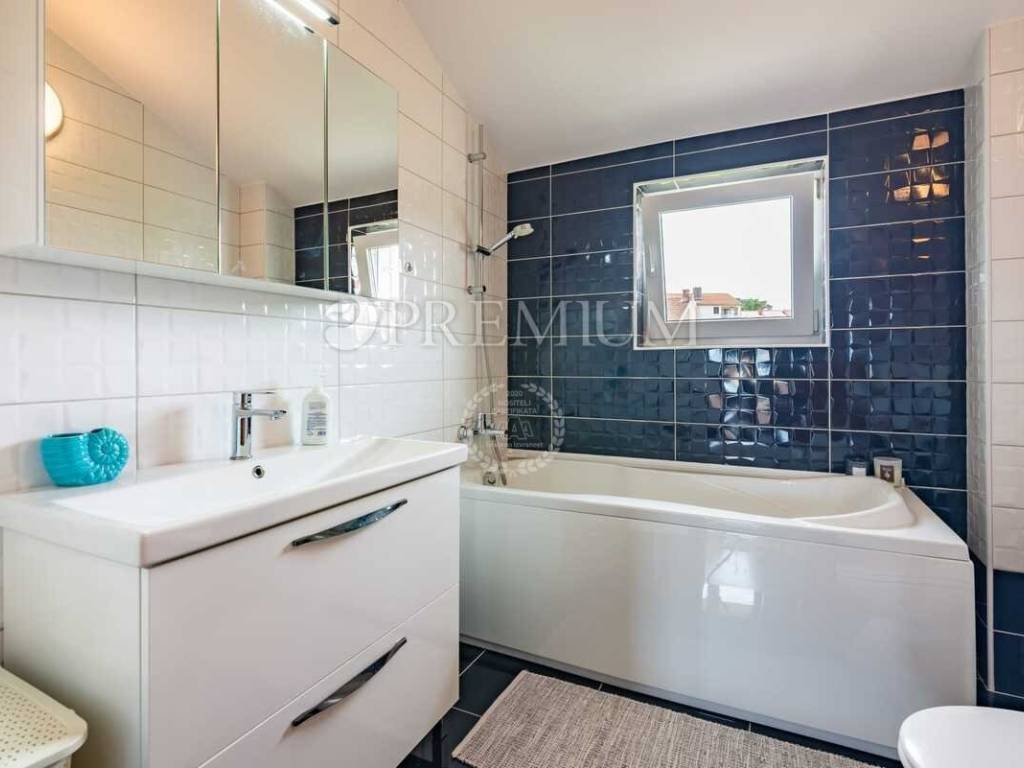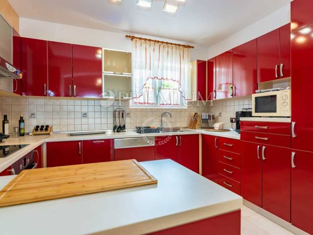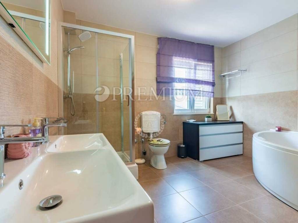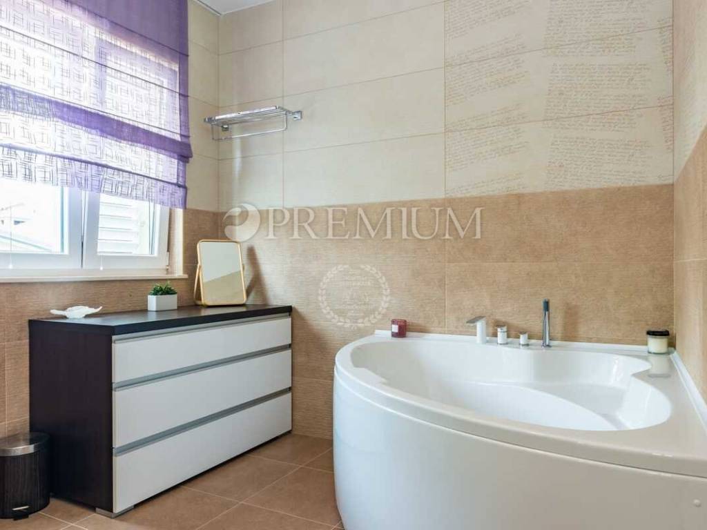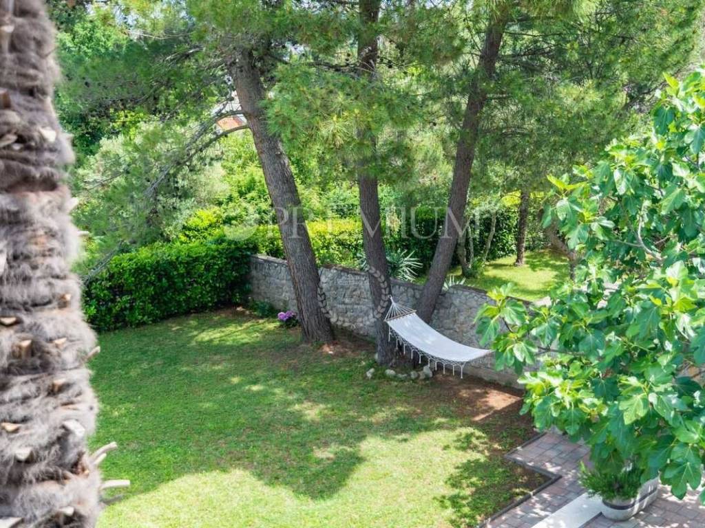 Okućnica je lijepo uređena i osmišljena za ugodan boravak na otvorenom. Na njoj se nalazi bazen s hidromasažnim sustavom i sunčalištem te ljetna kuhinja s roštiljem, što ovaj prostor čini idealnim za opuštanje i druženje tijekom toplijih mjeseci.