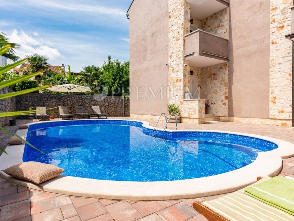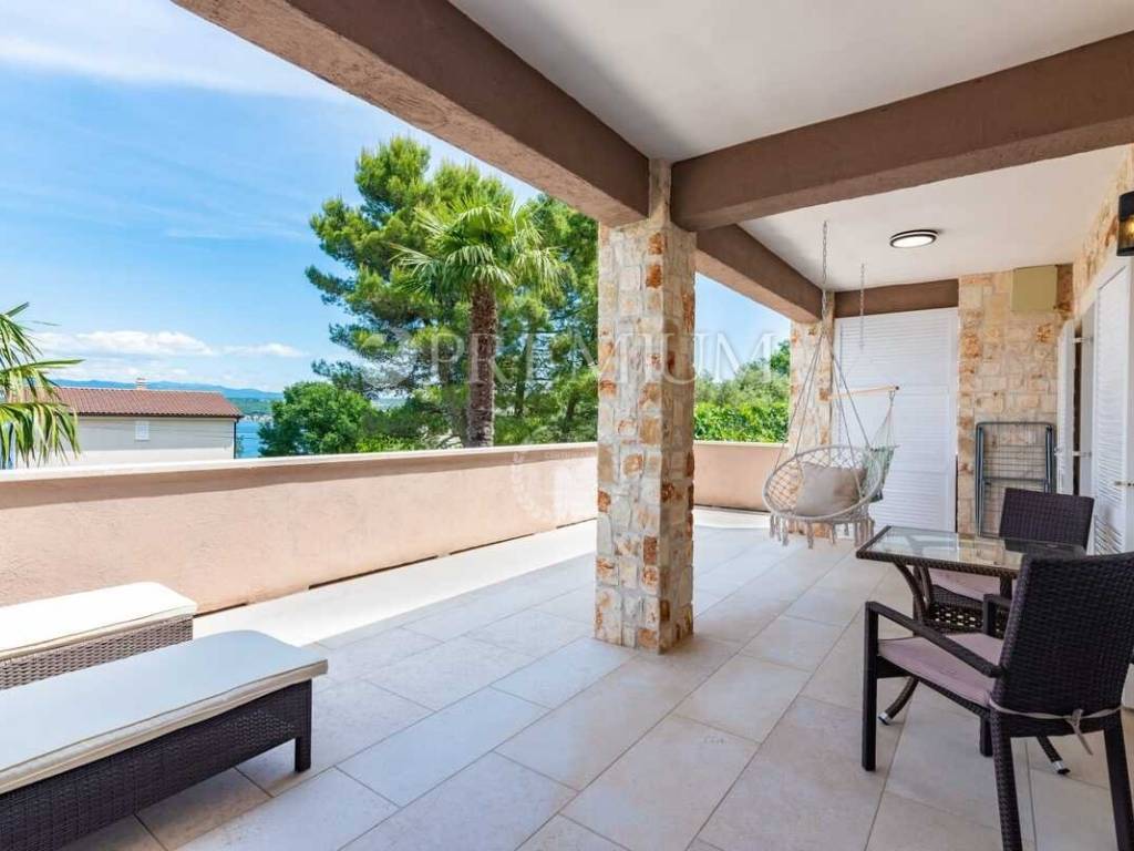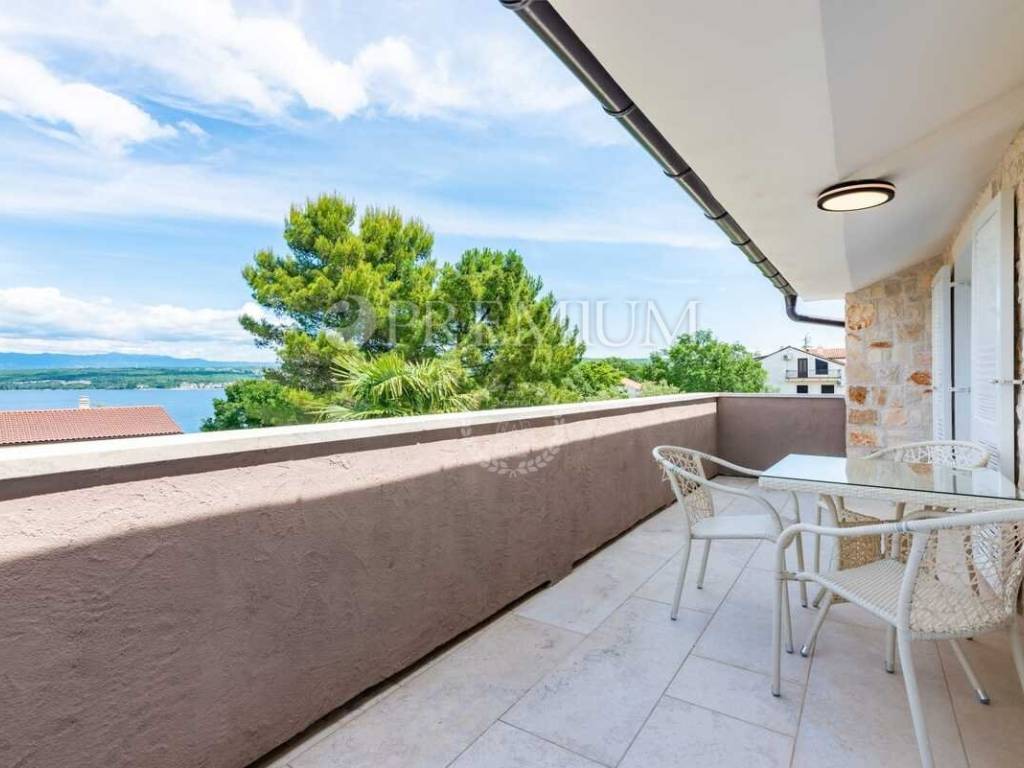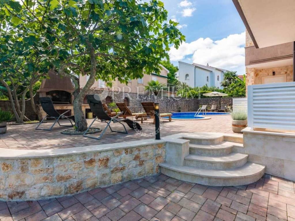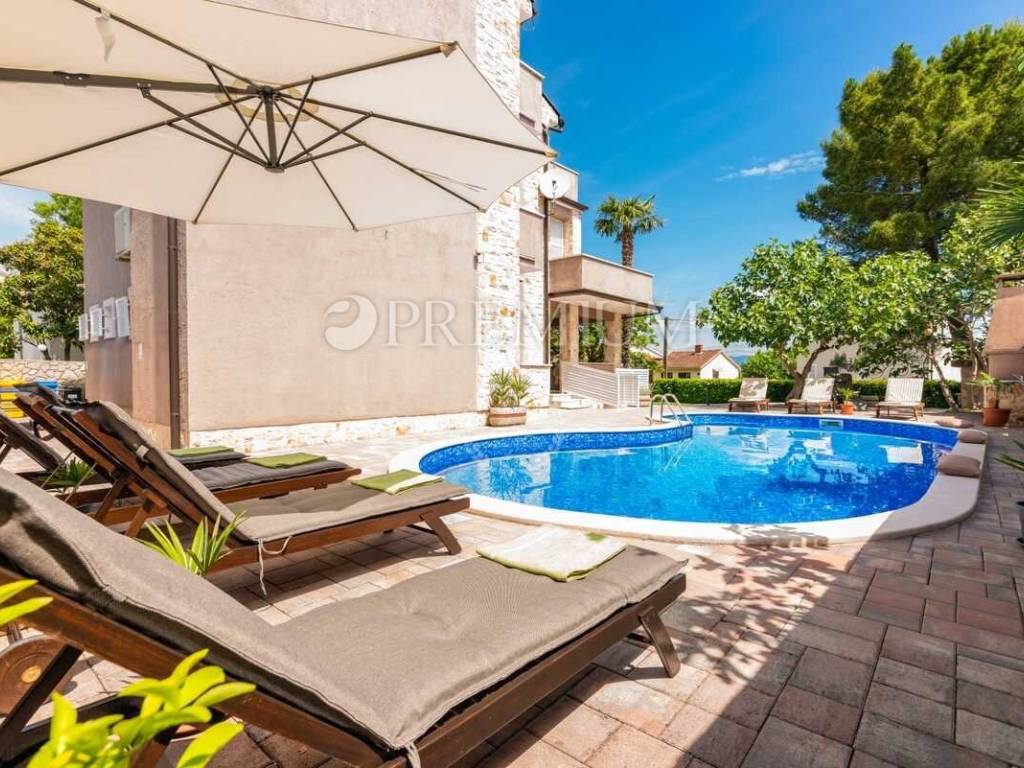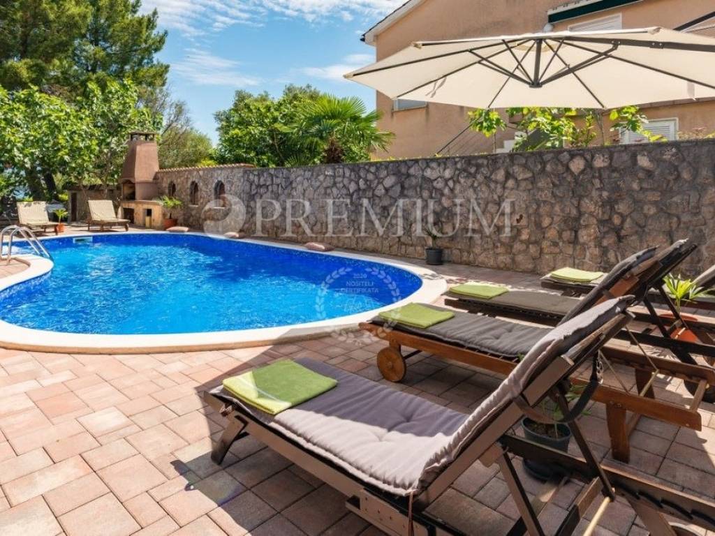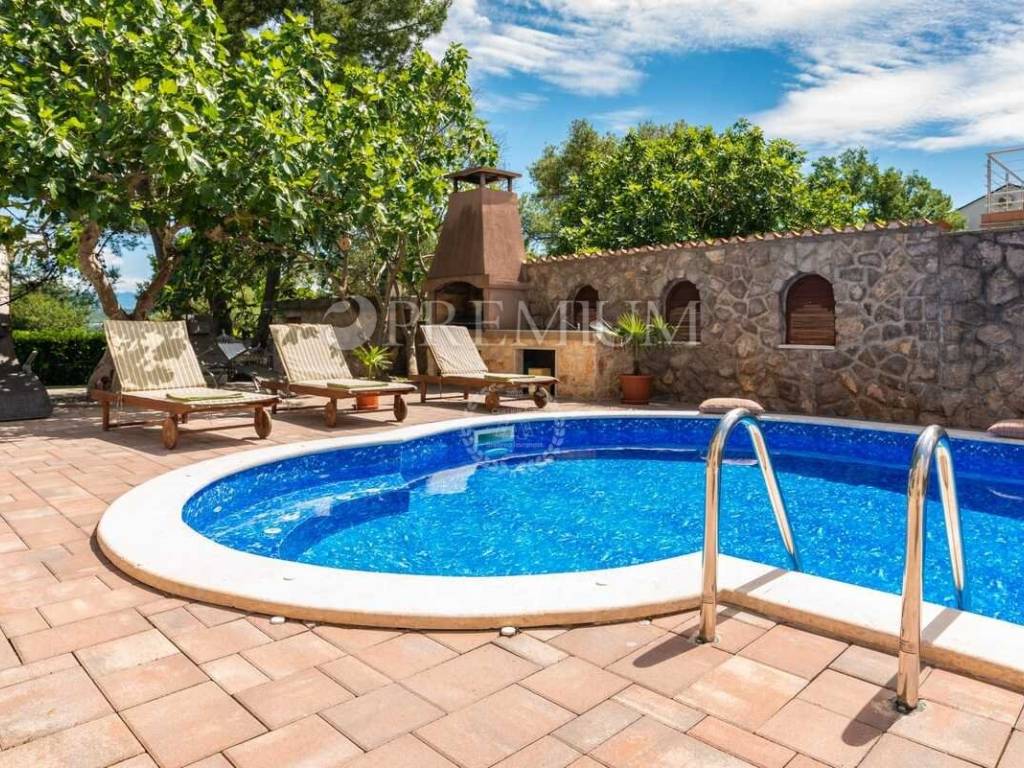Malinska, prodaja samostojeće kuće s bazenom i pogledom na more, na atraktivnoj lokaciji.