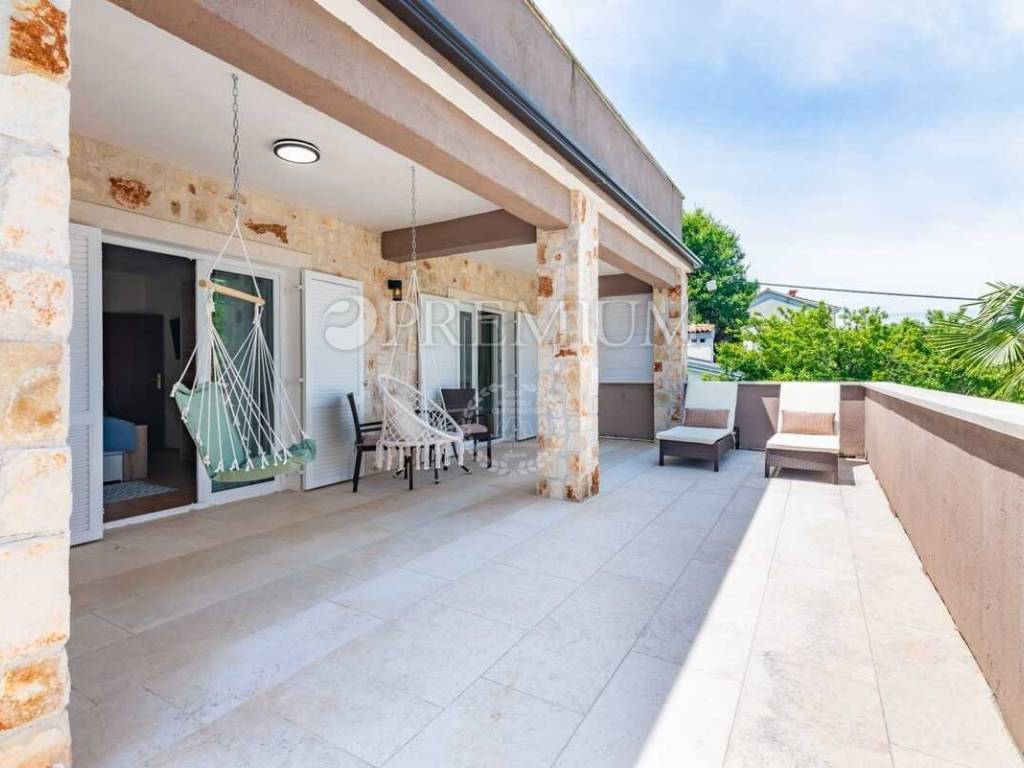 U Malinskoj na otoku Krku prodaje se samostojeća kuća stambene površine 332 m², katnosti podrum + prizemlje + dva kata. Kuća je izgrađena 2007. godine, a potpuno je renovirana 2019. godine.