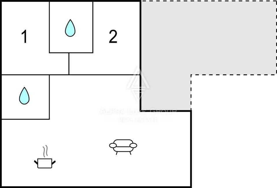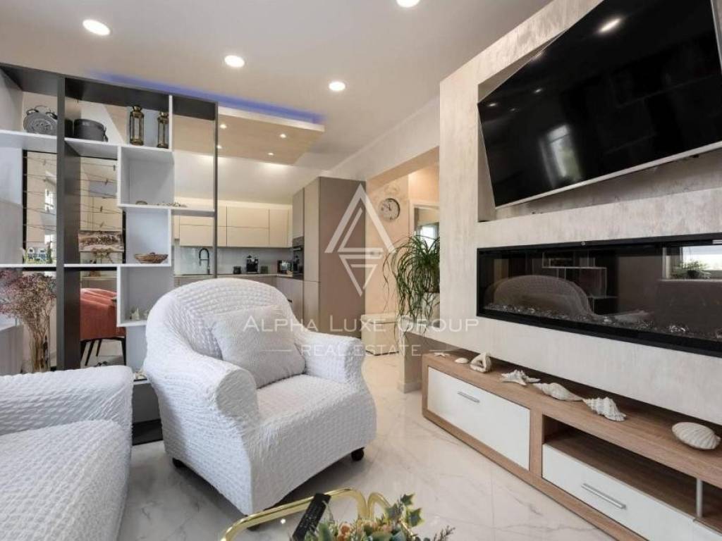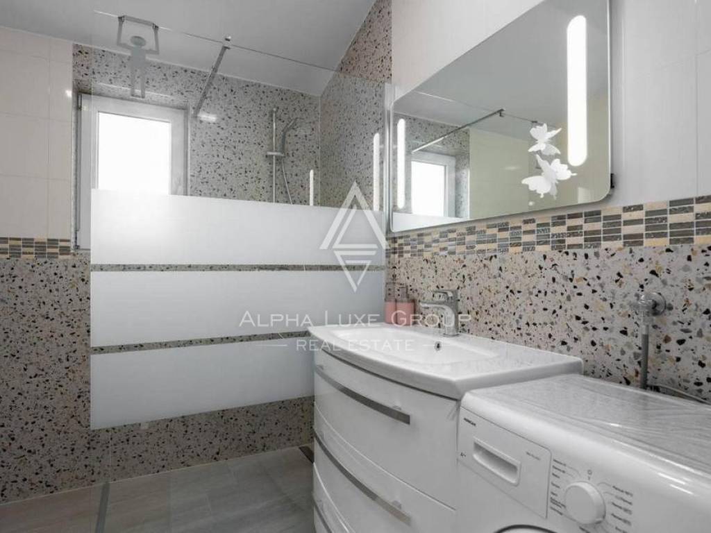 Unutrašnjost kuće osmišljena je za ugodan i funkcionalan život. Sastoji se od dvije udobne spavaće sobe, dvije kupaonice, kuhinje povezane s blagovaonicom te toplog i svijetlog dnevnog boravka. Iz dnevnog prostora izlazi se na prostranu terasu s očaravajućim pogledom na maslinik i more – mjesto koje će zasigurno postati omiljeni kutak za jutarnju kavu ili večernje opuštanje uz zalazak sunca.