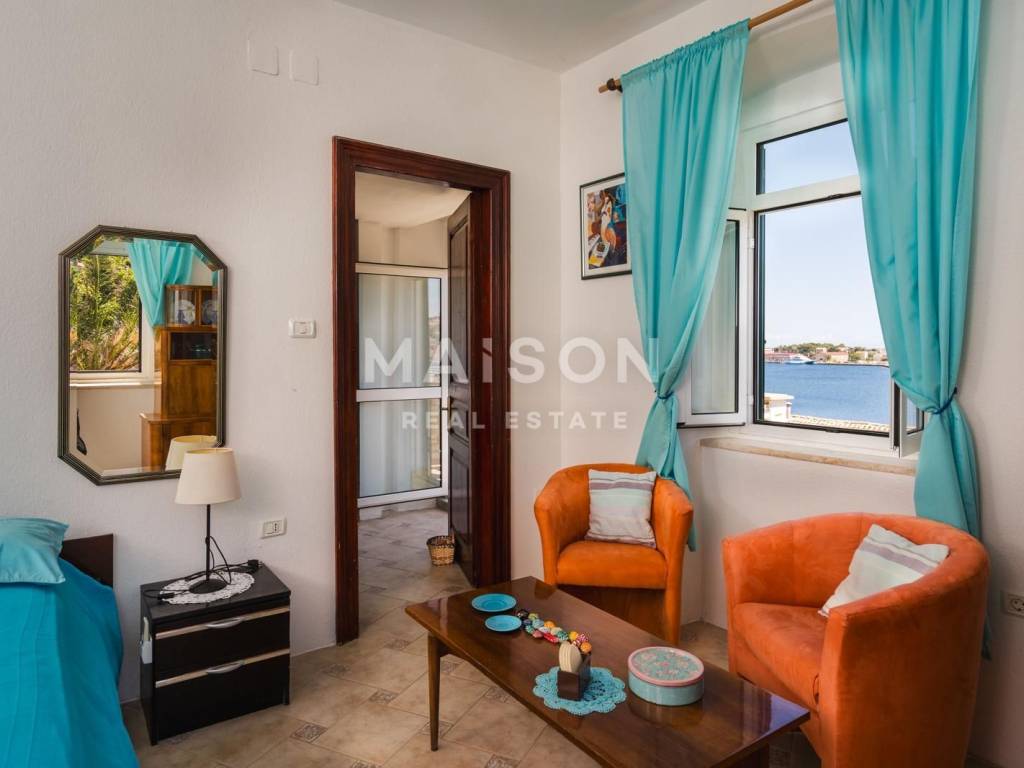 Nekretnina je organizirana u tri zasebna apartmana, svaki s vlastitim ulazom, što pruža iznimnu fleksibilnost korištenja – bilo kao obiteljski dom, kuća za odmor ili kao investicija za turistički najam. S gornjih etaža pruža se lijep pogled na more i grad, koji dodatno naglašava mediteranski ugođaj ove nekretnine.