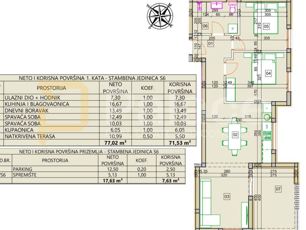 Stavlja se na prodaju stambena jedinica S6 na 1. katu zgrade na atraktivnoj lokaciji na području Vodica, neto površine 77,02m2, s pogledom na Vodički i okolni akvatorij.