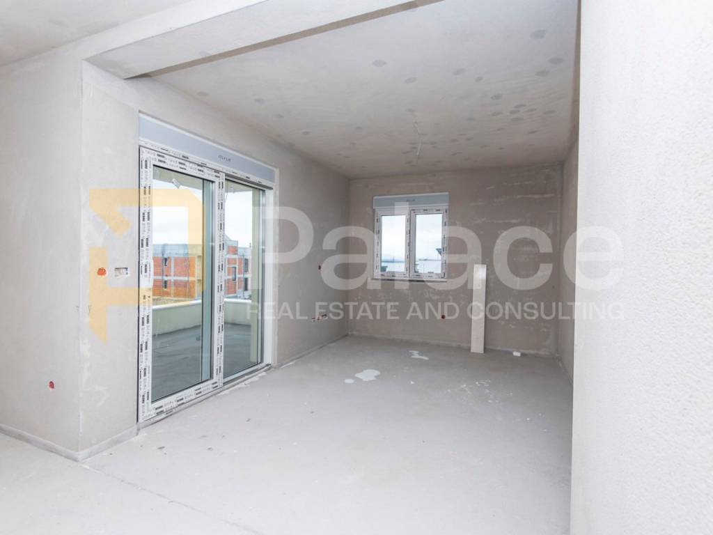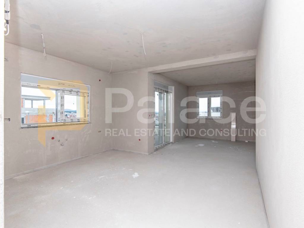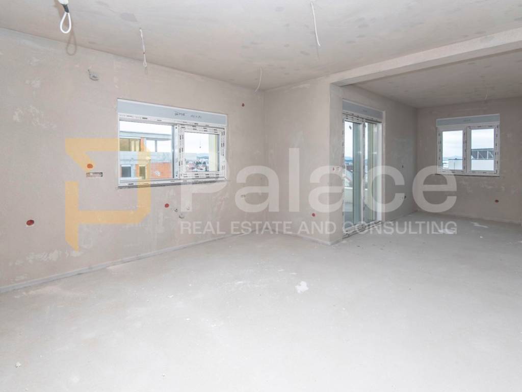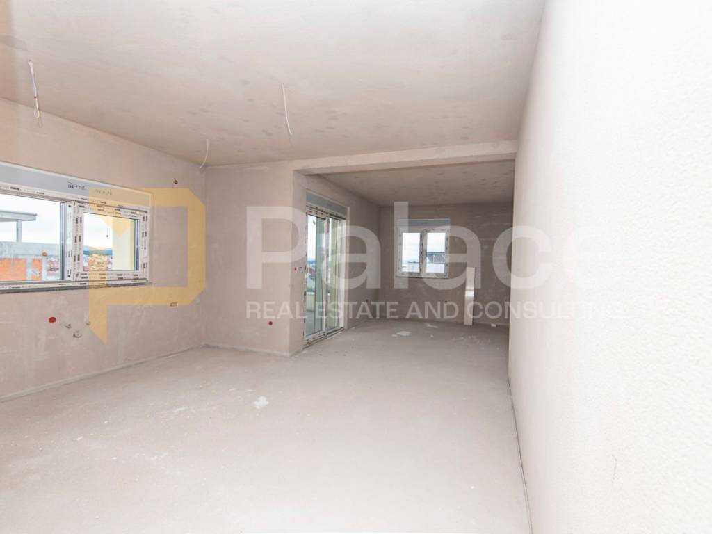 Nekretnina je građena modernim stilom i vrhunskim materijalima od čega se posebno ističe beige aluminijska stolarija i električne rolete u istoj boji.