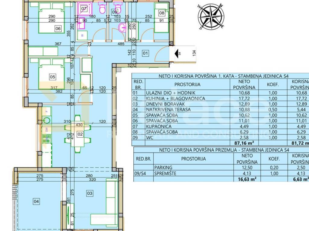 Stambena jedinica također posjeduje i parkirno mjesto od 12,5m2.