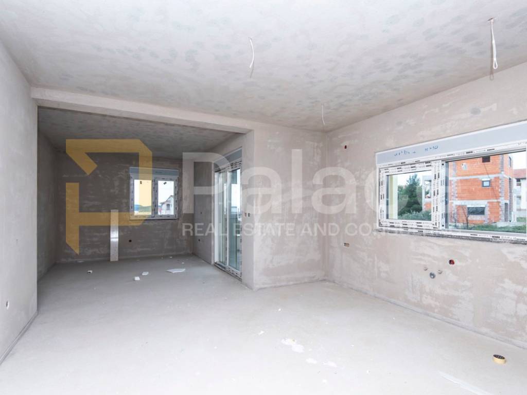 Nekretnina je građena modernim stilom i vrhunskim materijalima od čega se posebno ističe beige aluminijska stolarija i električne rolete u istoj boji.