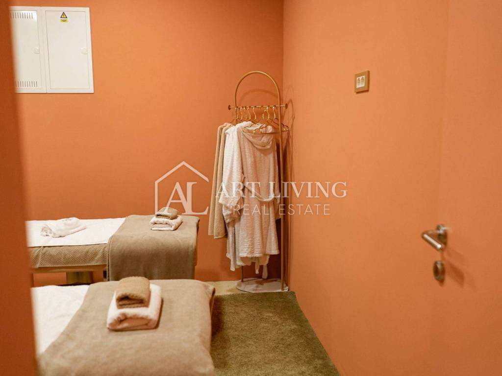 Prodaje se/daje se u najam kompletno uređen i opremljen SPA prostor od 65 m² u novoizgrađenoj zgradi u centru Umaga, u neposrednoj blizini mora. Prostor je moderno dizajniran i spreman za rad bez dodatnih ulaganja – idealna prilika za pokretanje ili nastavak spa, wellness ili beauty poslovanja.