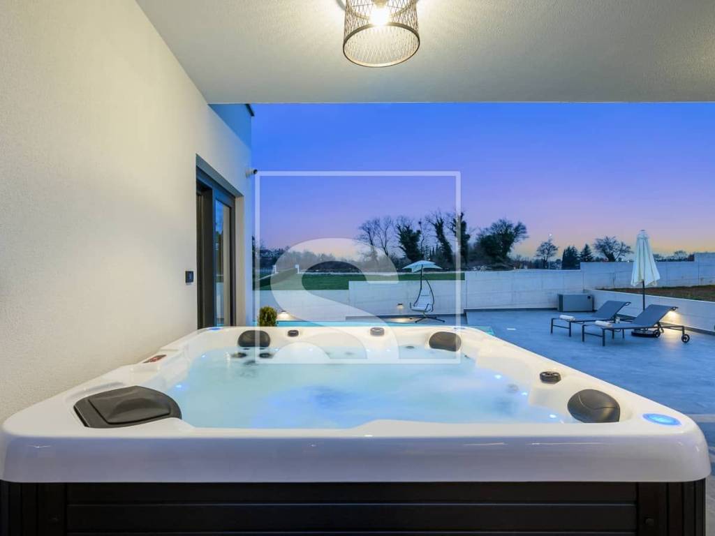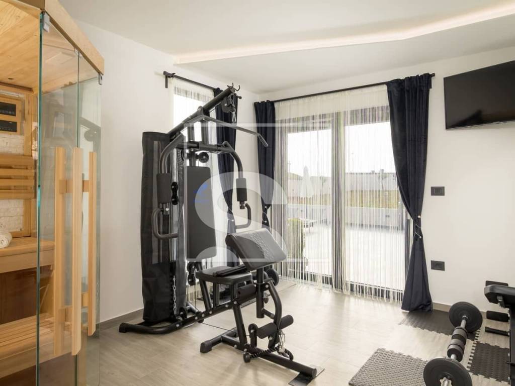 Posebnu vrijednost ovoj nekretnini daje njezin impresivan wellness sadržaj. Privatni bazen, jacuzzi, sauna i moderno opremljena teretana pružaju potpun doživljaj luksuza i opuštanja, stvarajući vlastitu zonu mira i regeneracije. Svaki detalj vile pažljivo je osmišljen – od čistih arhitektonskih linija do suvremenog dizajna koji savršeno spaja estetiku i praktičnost.
