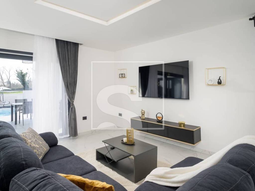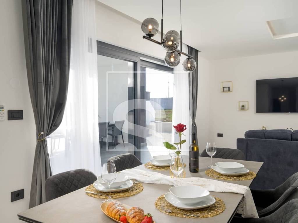Vila je osmišljena s naglaskom na udobnost i funkcionalnost, a njezin prostrani dnevni boravak povezan s moderno opremljenom kuhinjom i blagovaonicom čini središnje mjesto okupljanja, idealno za opuštanje i druženje. Dvije sofisticirano uređene spavaće sobe te dvije elegantne kupaonice osiguravaju maksimalan komfor i privatnost.