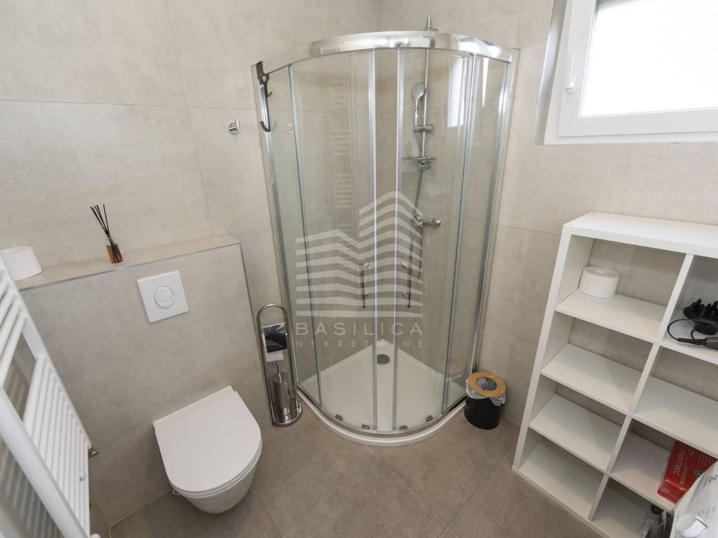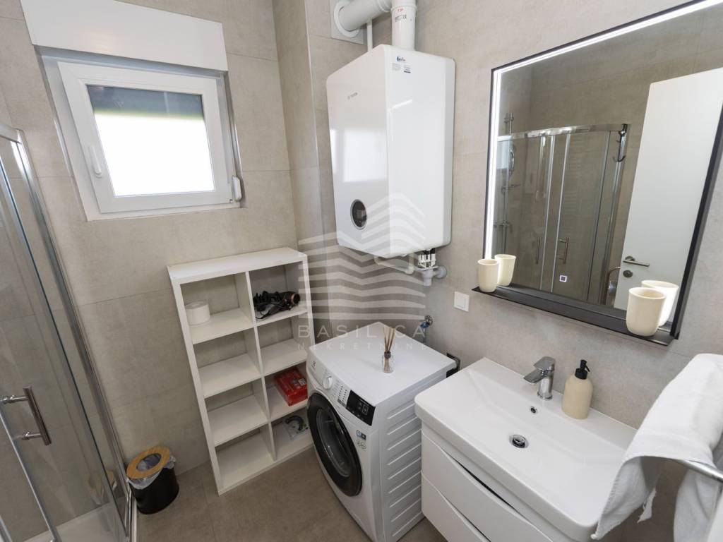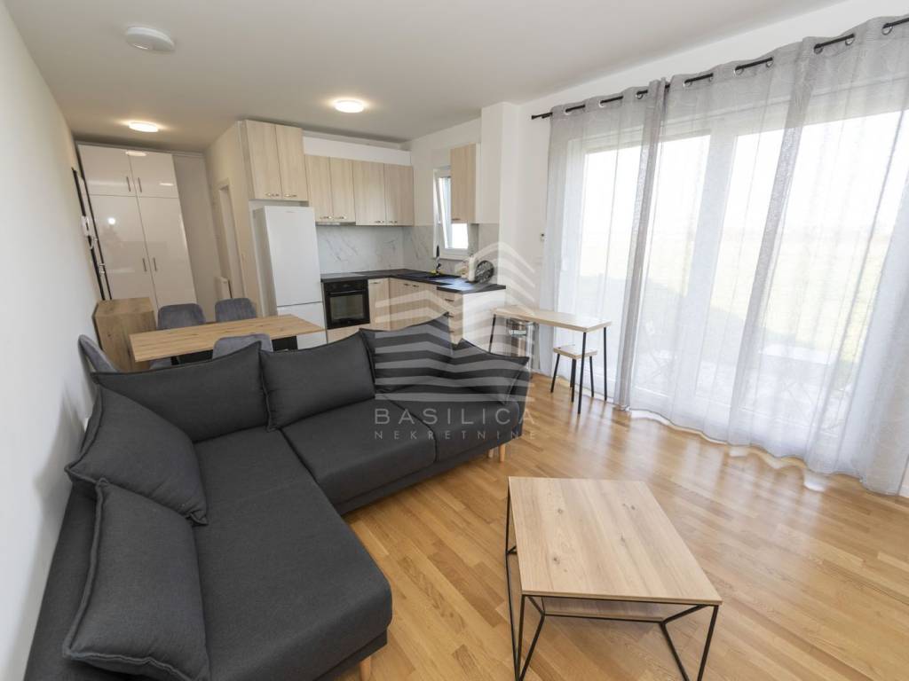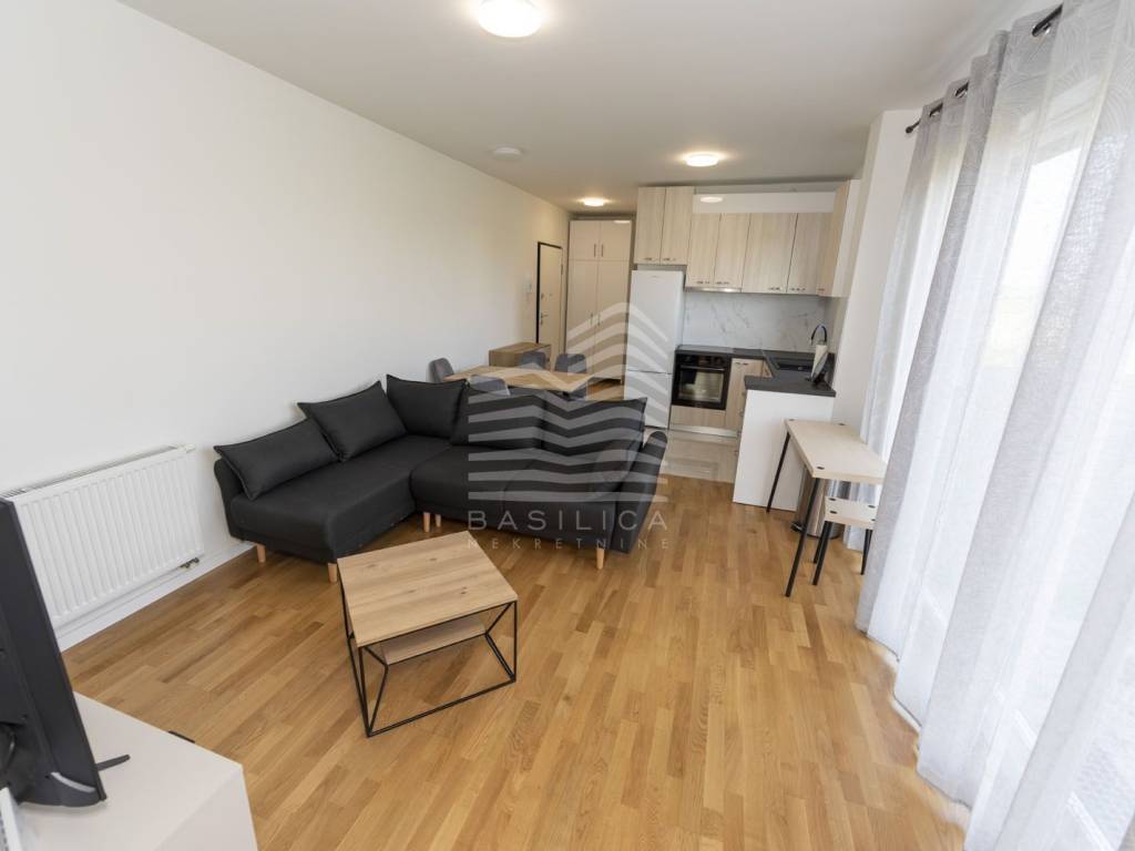Veliko Polje / Velika Mlaka - stan u novogradnji, nalazi se u ulici Kovači, novonamješten i opremljen stan. Zgrada se sastoji od visokog prizemlja i 2 kata. Samo jedan stan po etaži. Nalazi se u visokom prizemlju, dvosoban, te se sastoji od ulaznog hodnika, dnevnog boravka sa kuhinjom i blagovaonicom, kupaonice i spavaće sobe, stambene površine 40,52m2, te jednog vanjskog parkirnog mjesta od 17,1m2 (obračunski 4,28m2), i veliko vrta koji pripada samo tom stanu (92,65m2 - obračunski 9,27m2). Ukupna obračunska površina je 54,07m2.