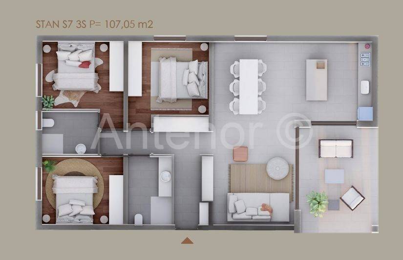 PRIVLAKA - (S7) - prodaje se trosoban stan na drugom katu površine107,05 m2 prvi red do mora. Zgradaima lift. Stan se sastoji odtri spavaće sobe, dvije kupaonice,kuhinje s blagovaonicom i dnevnim boravkom površine 40,15m2, te natkrivene terase površine 9,7m2. Stanu pripada jedno parkirno mjesto (P3) i spremište. Prostorije su raspoređene prema pogledu i prirodnom svjetlu. Udaljenost od mora i plaže je svega 100m. Nalazi se u mirnom dijelu mjesta, a u blizinisvih drugihsadržaja potrebnih za svakodnevni život.