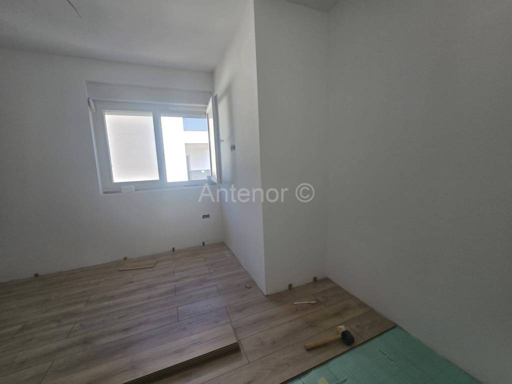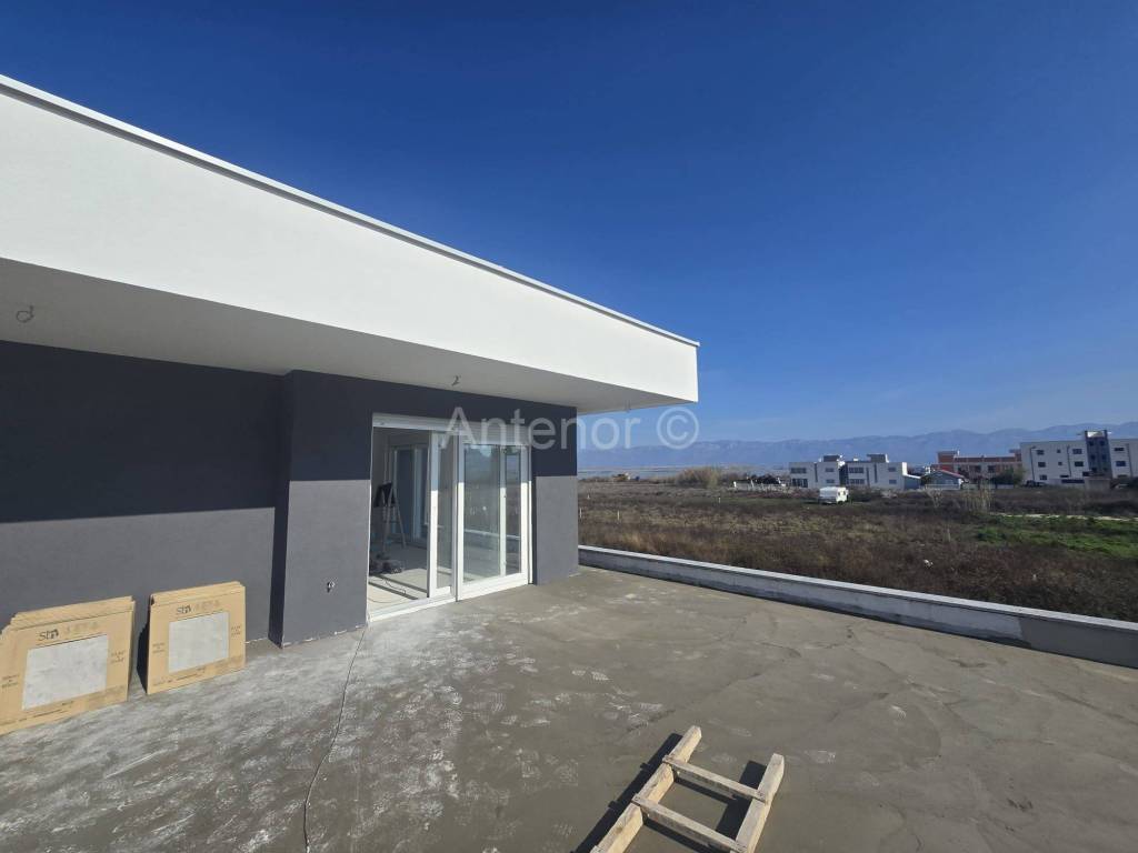 Penthouse se sastoji od dnevnog boravka s kuhinjom i blagovaonicom, kupaonice sa toaletom, posebnim toaletom, dvije spavaće sobe, ostavom, hodnikom, dva parkirna mjesta, natkrivene terase, te 49m2 nenatkrivene prostrane terase s predivnim pogledom na more.