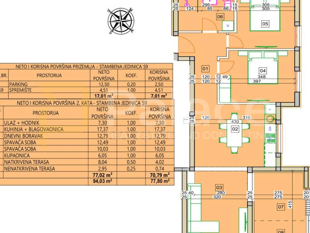 Stavlja se na prodaju stambena jedinica S9 na 2. katu zgrade na atraktivnoj lokaciji na području Vodica, neto površine 77,01m2, s pogledom na Vodički i okolni akvatorij.