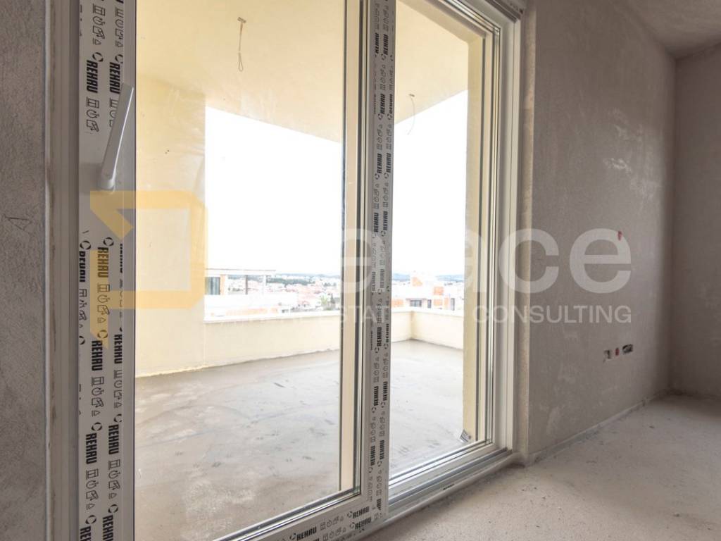Nekretnina je građena modernim stilom i vrhunskim materijalima od čega se posebno ističe beige aluminijska stolarija i električne rolete u istoj boji.