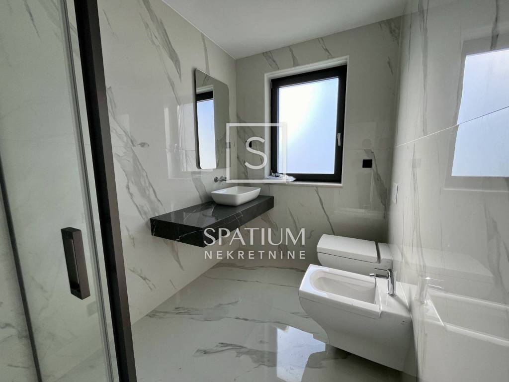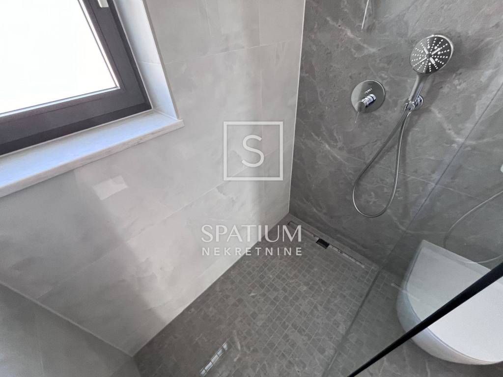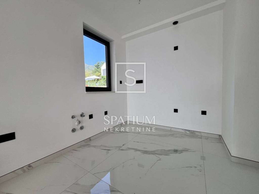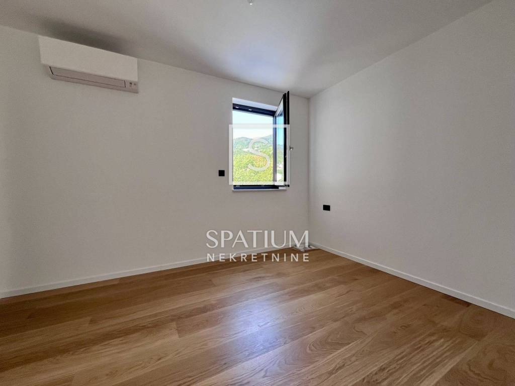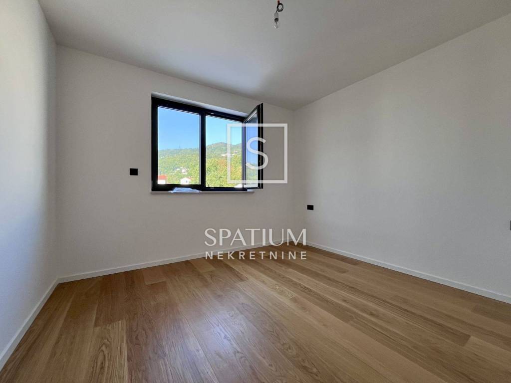 POBRI, u ponudu smo dobili dvoetažni stanu u novogradnji. Smješten na mirnoj lokaciji, sastoji se od prizemlja i kata. Ukupna stambena površina iznosi 158,60 m2 te istu sačinjavaju ulaz, odvojeni toalet, praonica, kuhinja, blagovaonica i dnevni boravak na prizemnoj razini. Unutarnje stubište vodi na kat gdje se nalaze hodnik, tri sobe, tri kupaonice, garderoba i lođa. Iz prizemlja i s kata se proteže pogled na more te je stan orijentiran prema suncu. Na okućnici od 65,76 m2 nalaze se terasa i hidromasažna kada te tri parkirna mjesta. Ukupna površina s koeficijentima iznosi 162,29 m2. Cijela nekretnina opremljena je podnim grijanjem s dizalicama topline na struju marke Vaillant, multi-split Daikin jedinicama klime zaduženima za grijanje i hlađenje prostora, vrhunskim troslojnim parketom te prvoklasnom keramikom i sanitarijama. Postavljena je priprema za solarnu elektranu. Pripada mu i okućnica od 103,26m2 na kojoj se nalaze i tri parkirna mjesta od kojih su dva natkrivena. Nekretnina se nalazi u blizini Opatije, kao i Riječke zaobilaznice, dok su svi ostali sadržaji neophodni za život u blizini. Svojim konceptom, veličinom i prostranošću nudi mogućnosti, kako za život, tako i u svrhu investicije.