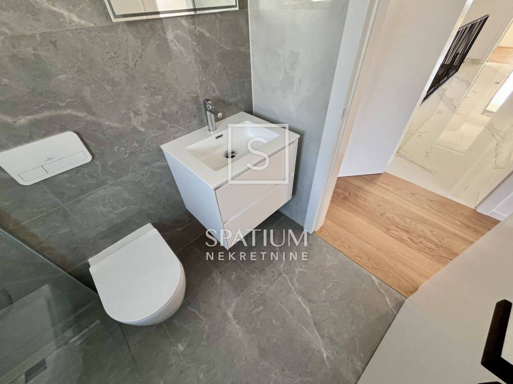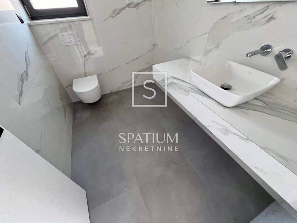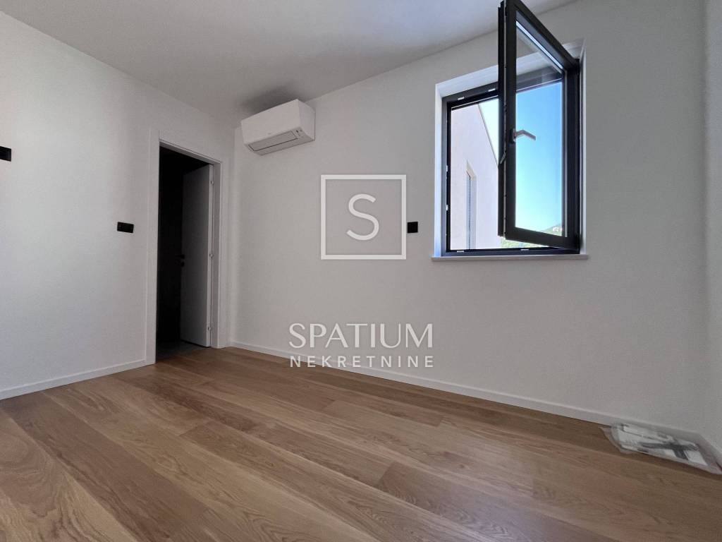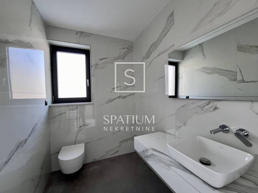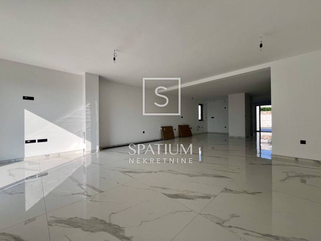 POBRI, u ponudu smo dobili dvoetažni stanu u novogradnji. Smješten na mirnoj lokaciji, sastoji se od prizemlja i kata. Ukupna stambena površina iznosi 158,60 m2 te istu sačinjavaju ulaz, odvojeni toalet, praonica, kuhinja, blagovaonica i dnevni boravak na prizemnoj razini. Unutarnje stubište vodi na kat gdje se nalaze hodnik, tri sobe, tri kupaonice, garderoba i lođa. Iz prizemlja i s kata se proteže pogled na more te je stan orijentiran prema suncu. Na okućnici od 65,76 m2 nalaze se terasa i hidromasažna kada te tri parkirna mjesta. Ukupna površina s koeficijentima iznosi 162,29 m2. Cijela nekretnina opremljena je podnim grijanjem s dizalicama topline na struju marke Vaillant, multi-split Daikin jedinicama klime zaduženima za grijanje i hlađenje prostora, vrhunskim troslojnim parketom te prvoklasnom keramikom i sanitarijama. Postavljena je priprema za solarnu elektranu. Pripada mu i okućnica od 103,26m2 na kojoj se nalaze i tri parkirna mjesta od kojih su dva natkrivena. Nekretnina se nalazi u blizini Opatije, kao i Riječke zaobilaznice, dok su svi ostali sadržaji neophodni za život u blizini. Svojim konceptom, veličinom i prostranošću nudi mogućnosti, kako za život, tako i u svrhu investicije.
