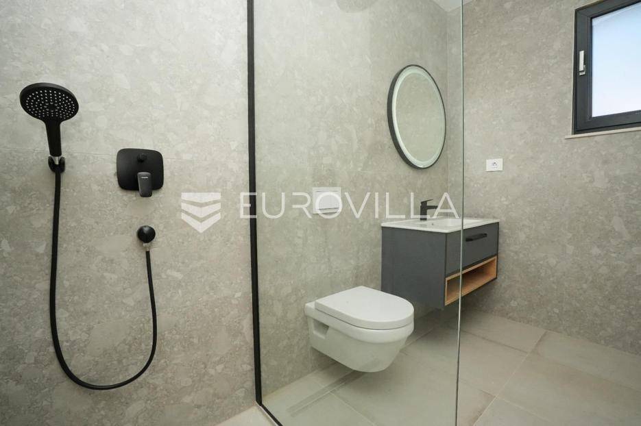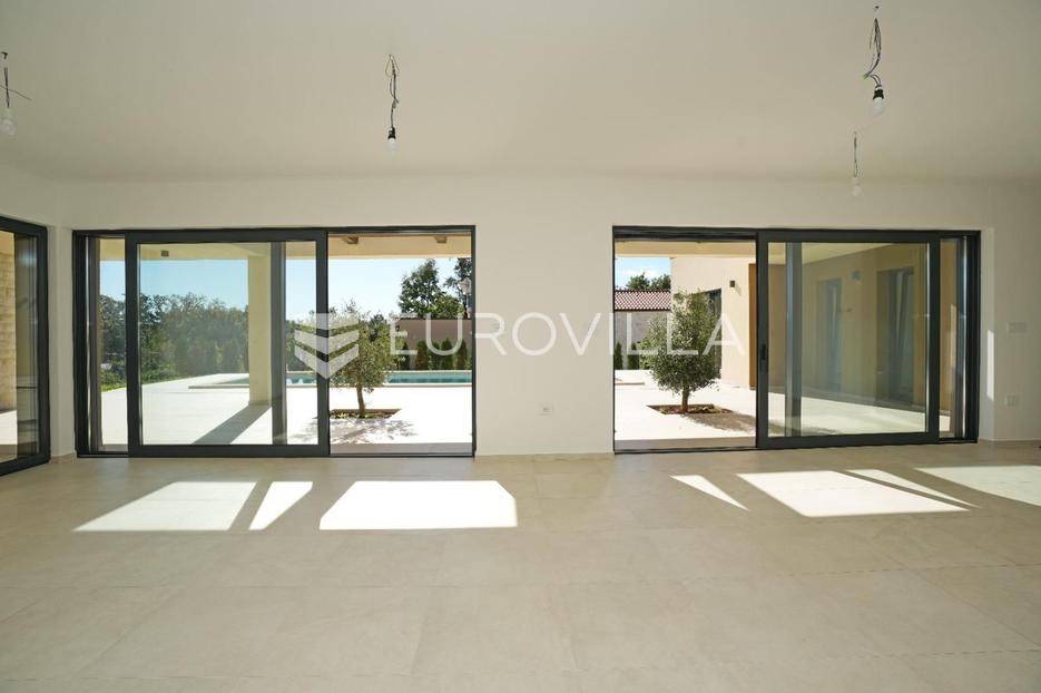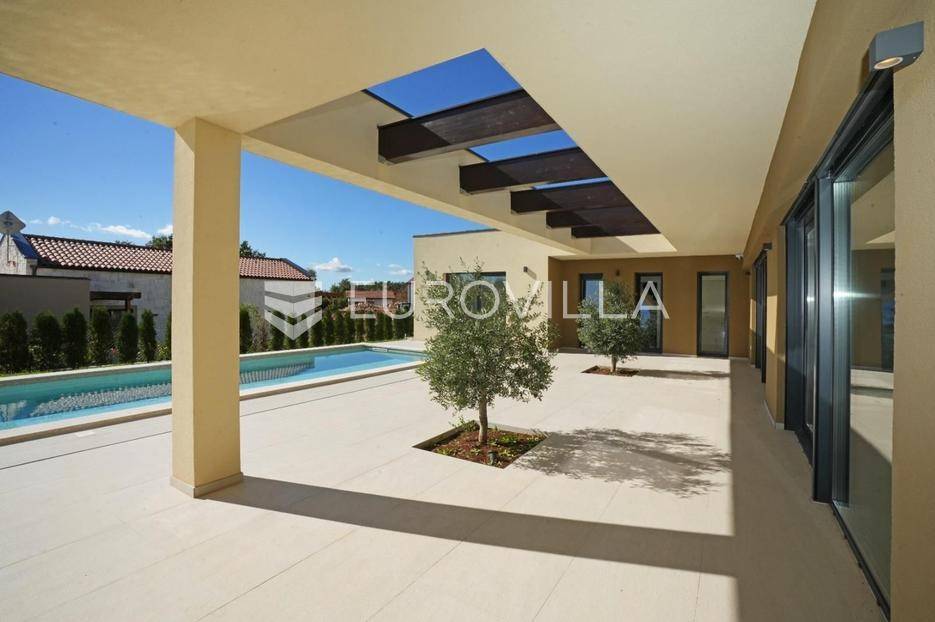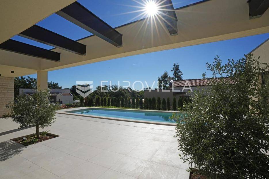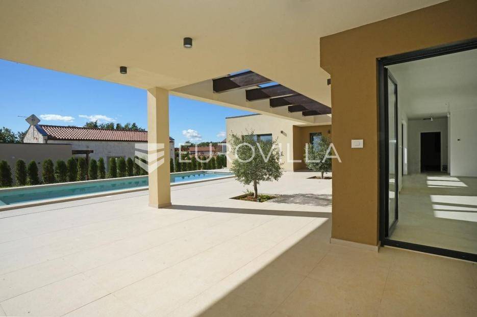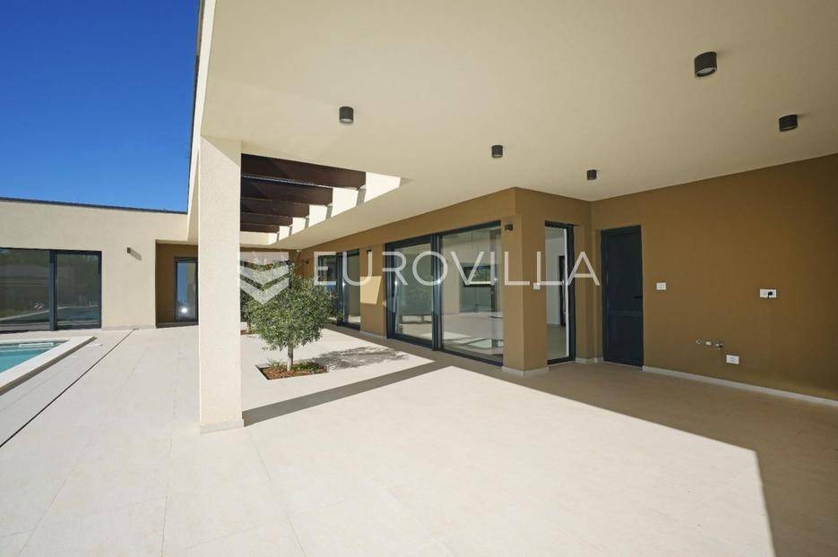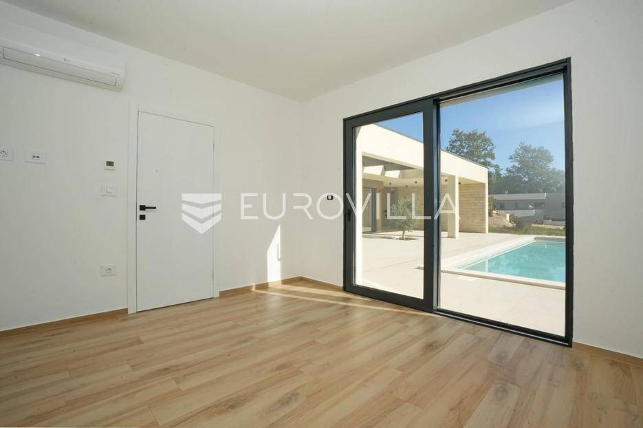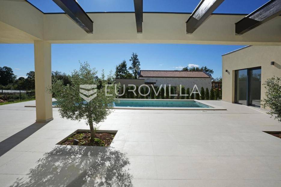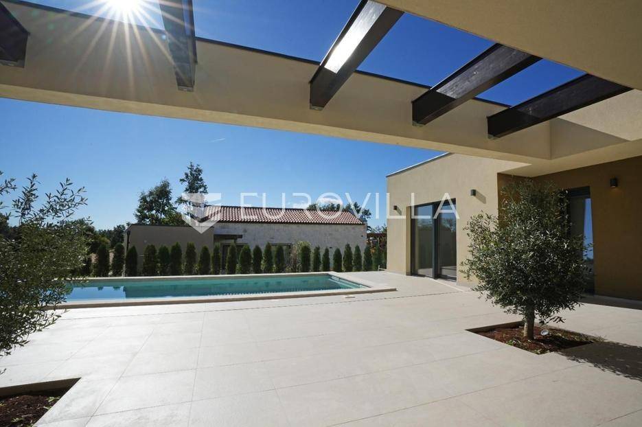 Istra, okolica Žminja, na prodaju je atraktivna moderna prizemnica smještena u mirnom naselju Krculi koja nudi kombinaciju privatnosti, suvremenog komfora i istarskog okruženja.Ukupna neto površina kuće iznosi 171,5 m² a je smještena na uređenom zemljištu površine 792 m².Osnovne karakteristikeprizemnica – funkcionalan i moderan raspored3 spavaće sobe3 kupaonice + 2 dodatna WC-ajužna orijentacija – obilje prirodnog svjetlaprostran dnevni boravak s izlazom na terasu i bazengrijani vanjski bazenvelika natkrivena i nenatkrivena terasauređeni vrtOprema i tehničke karakteristikepodno grijanje na dizalicu toplineklima uređaj u svakoj prostorijialuminijska vanjska stolarija s troslojnim staklimaelektrične roleteDodatna oprema:vešerajostavapriprema za portafon i video nadzorprotuprovalna vrataEnergetska učinkovitost i moderna tehnologijasolarna elektrana na krovupunjač za električna vozilaenergetski učinkovito rješenje grijanja i hlađenjaLokacijamirno i autentično istarsko seloodlična povezanost sa svim dijelovima Istreidealno za obiteljski život, odmor ili turistički najamOva kuća predstavlja spoj moderne arhitekture, energetske učinkovitosti i komfora. Zahvaljujući vrhunskoj opremi i mirnoj lokaciji, idealna je kako za obiteljski život, tako i kao investicija za luksuzni turistički najam.Za više informacija stojimo vam na raspolaganju.... Više na eurovilla.hr, ID: 731544