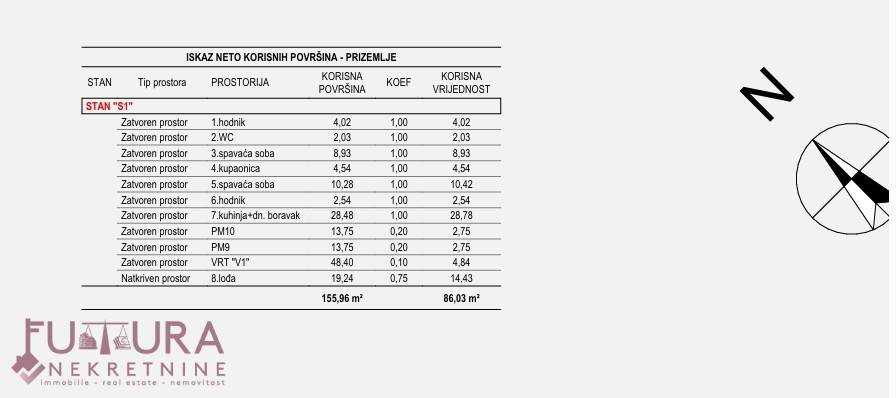 Posjeduje dva parkirna mjesta i vrt od 48,40 m2.