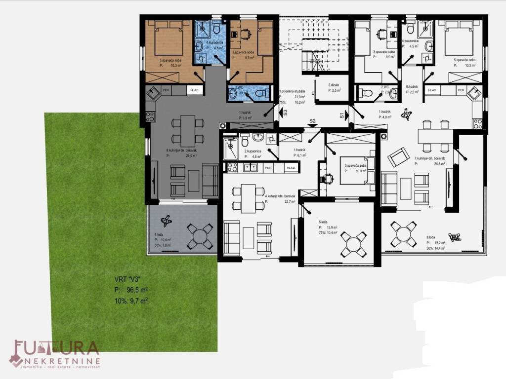 Gledati tlocrt stan oznake S3.