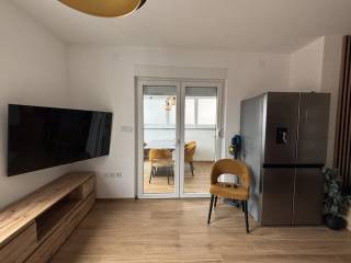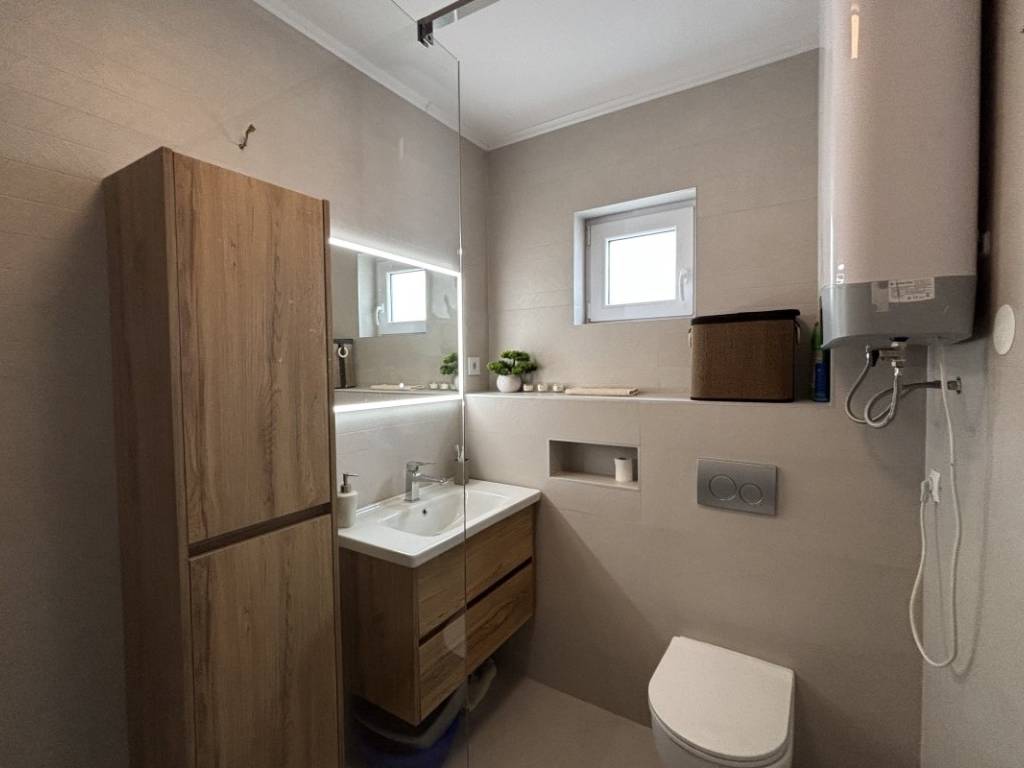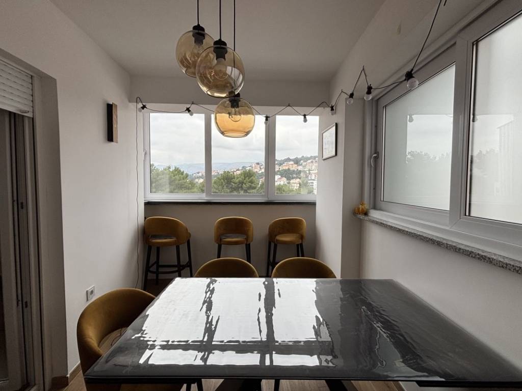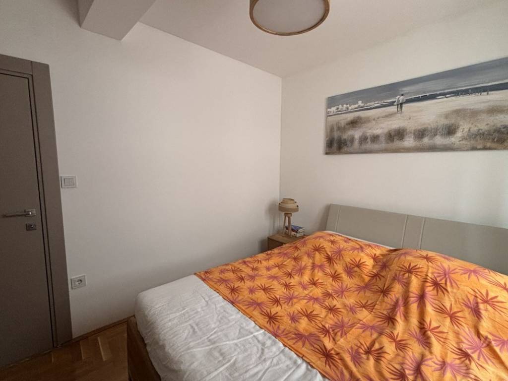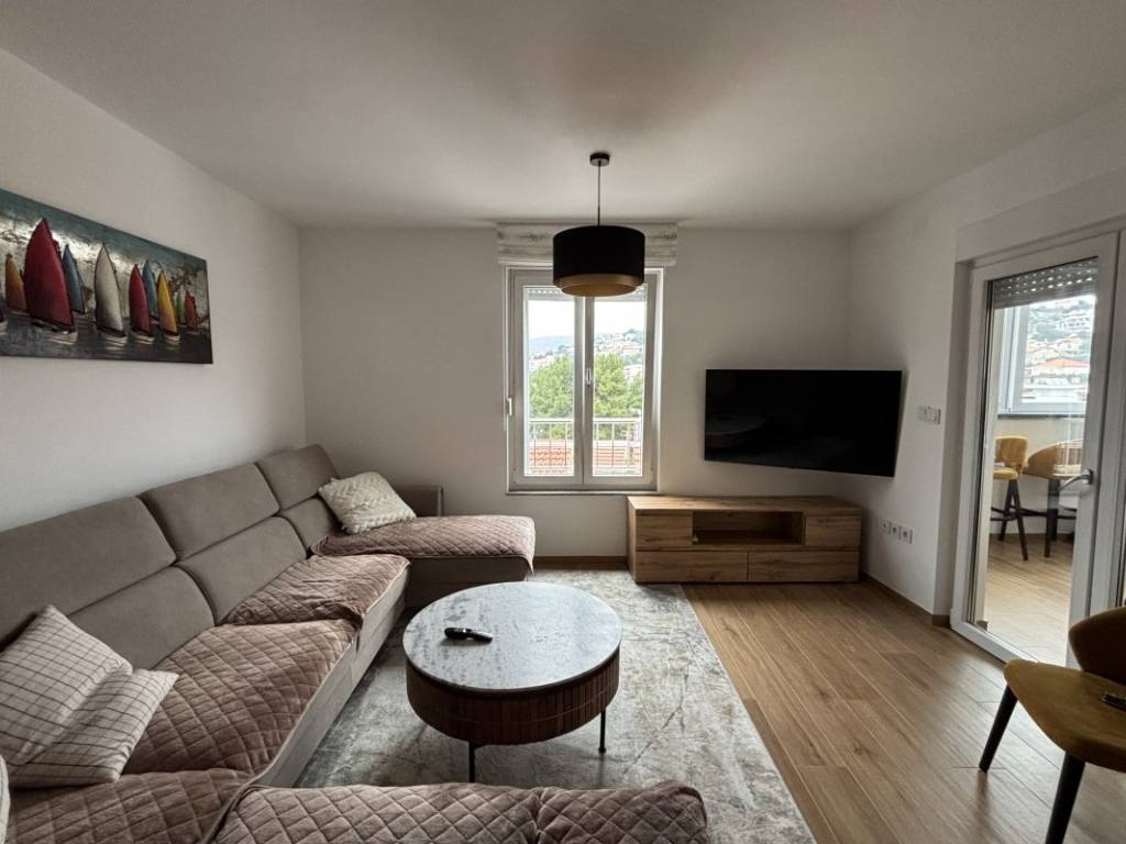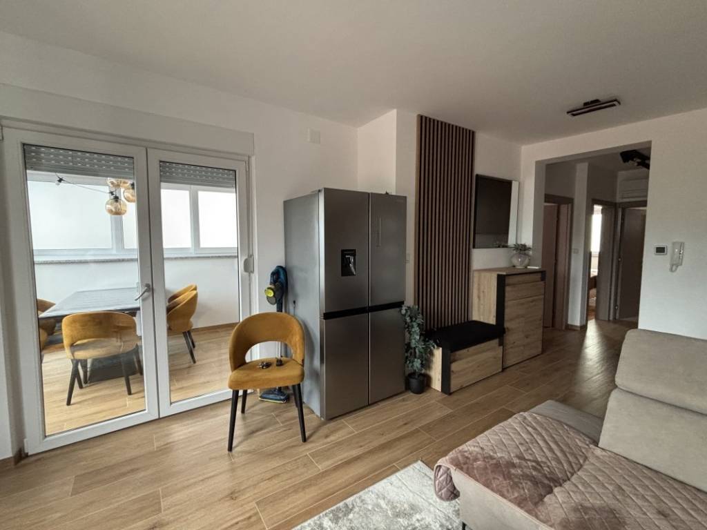 Ukupna stambena površina iznosi 59,08 m, a prostor je pažljivo organiziran kako bi pružio maksimalnu funkcionalnost i udobnost. Stan se sastoji od hodnika, moderno uređene kupaonice, dvije ugodne spavaće sobe, potpuno opremljene kuhinje te prostranog i svijetlog dnevnog boravka koji pruža ugodnu atmosferu za boravak i druženje. Posebnu vrijednost nekretnini daje zatvorena terasa uređena kao blagovaonica, iz koje se pruža djelomičan pogled na more, stvarajući ugodan prostor za opuštanje tijekom cijele godine.