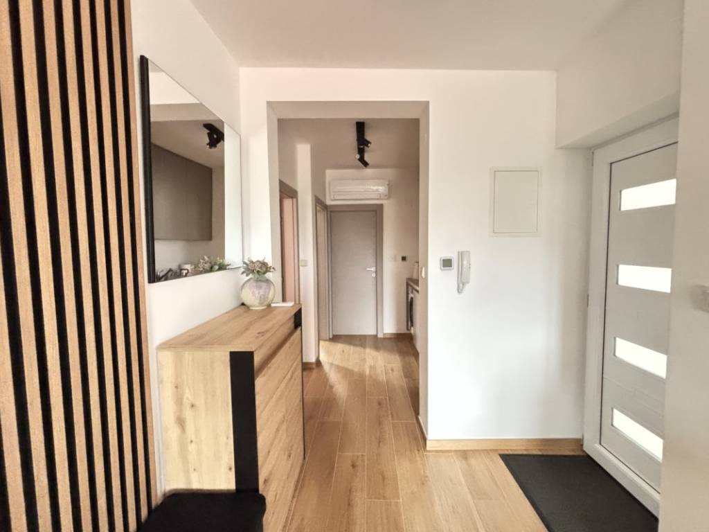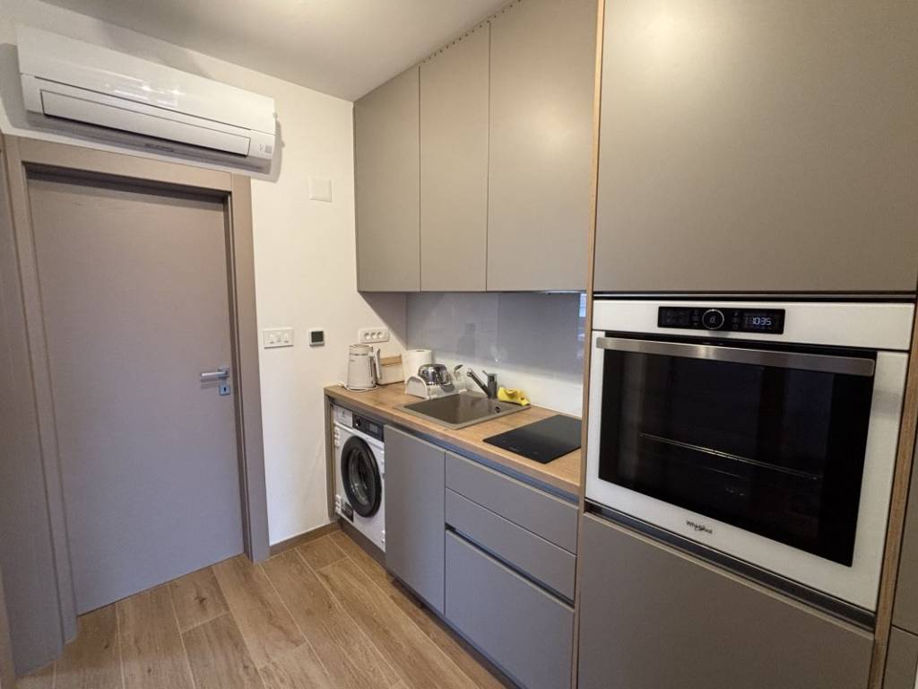 Stan je u potpunosti opremljen kvalitetnim i suvremenim namještajem koji je uključen u cijenu te se nekretnina prodaje potpuno namještena i spremna za useljenje. Opremljen je klima uređajem, dok su dnevni boravak i kupaonica dodatno opremljeni podnim grijanjem, što osigurava visoku razinu komfora tijekom svih godišnjih doba. Uz stan dolazi i jedno vanjsko parkirno mjesto, što predstavlja veliku prednost, osobito tijekom turističke sezone.