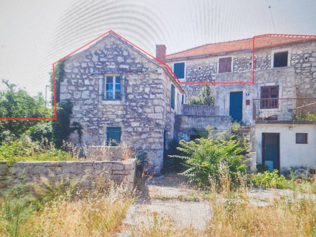 Prodaje se šarmantna dvojna, kamena kuća smještena u mirnom i zelenilom okruženom dijelu otoka na svega 2.5km od plaże i ulave Stračinska. Posjed sa nalazi na atraktivnoj lokaciji, svega desetak minuta hoda od prekrasnih uvala pogodnih za kupanje te u blizini centra mjesta i svih potrebnih sadržaja. Kuća se sastoji od tri etaže - podrum, prizemlje i kat - ukupne stambene površine 100 m². Nalazi se na parceli veličine 438 m², od čega dvorište zauzima 341 m². U dvorištu se nalaze i pomoćni objekti, a prostor nudi odličan potencijal za uređenje bazena i ljetne kuhinje., za osobnu i turističku namjenu. Trenutno stanje kuće zahtijeva kompletnu unutarnju adaptaciju, dok su vanjski zidovi u dobrom stanju. Kuća je ispražnjena i spremna za renovaciju prema željama novog vlasnika. Uređenjem suterenskog dijela może se dobiti dodatnih 40m2 prostora. • Površina kuće: 100 m² + 40m2 (prostor koji se dodatno moze urediti u stambeni dio) • Površina parcele: 438 m² • Površina dvorišta: 341 m² ---‐-------- Charming Semi-Detached Stone House for Sale Located in a peaceful and green area of the island, just 2.5 km from the beach and the Stračinska cove, this charming semi-detached stone house offers a unique opportunity. The property is situated in an attractive location, only a ten-minute walk from beautiful coves ideal for swimming, and close to the village center and all essential amenities. The house consists of three levels - basement, ground floor, and upper floor - with a total living area of 100 m². It sits on a 438 m² plot, of which 341 m² is a yard. The yard also includes auxiliary buildings, and the space offers excellent potential for adding a swimming pool and a summer kitchen, for personal and tourism.purpose. The house currently requires complete interior renovation, while the exterior walls are in good condition. The house is cleared out and ready for remodeling according to the new owner’s preferences. By renovating the basement level, an additional 40 m² of usable living space can be gained. House area: 100 m² + 40 m² (additional space that can be converted into living area) Plot size: 438 m² Lard size: 341 m² -