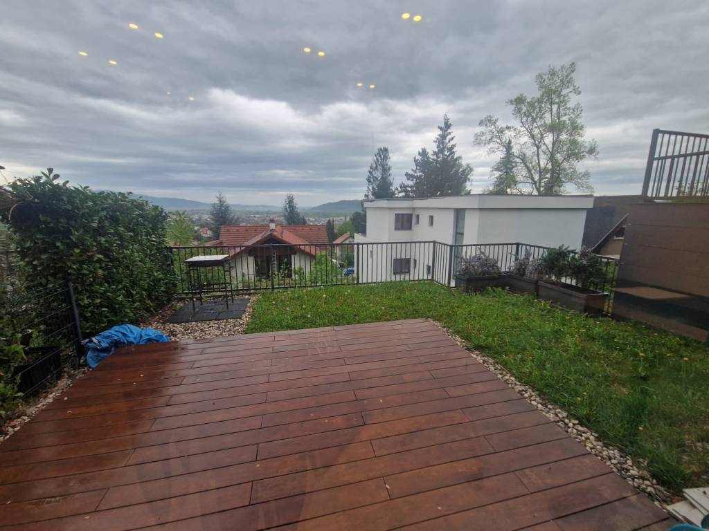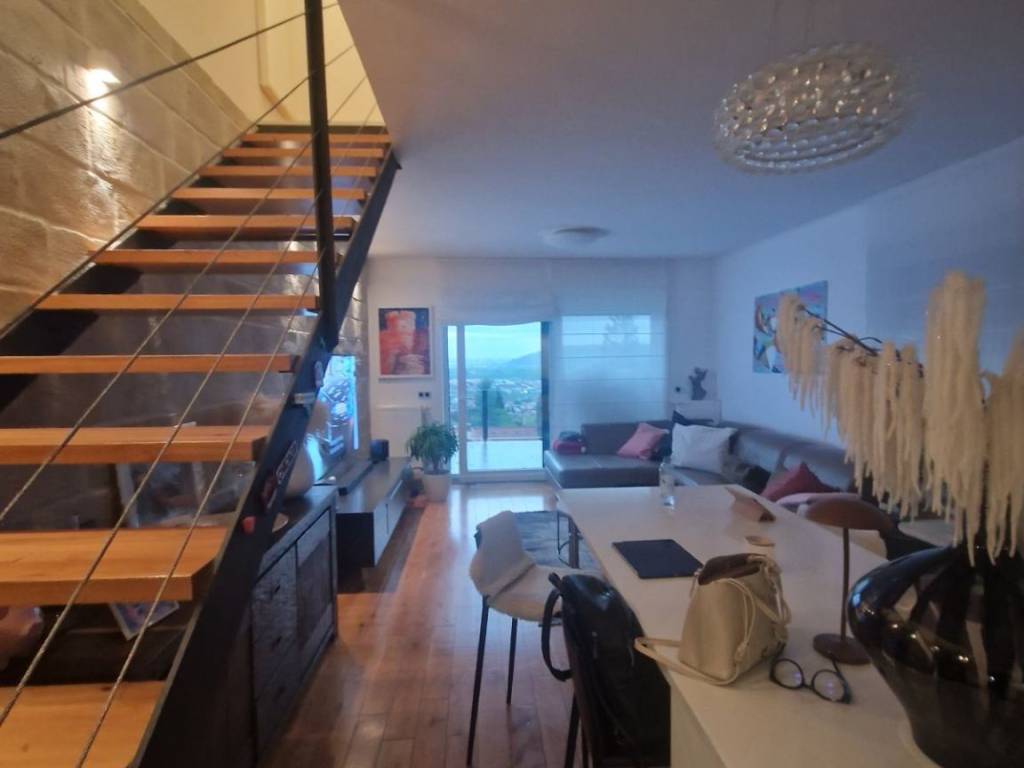 Prodaje se lijep više-etažni 5sobni stan u novijoj zgradi (2014 g). Stan se proteže na tri etaže i ukupne je obračunske površine oko 210m2, prostran je i moderno uređen te može funkcionirati kao kuća budući ima vlastiti ulaz, okućnicu i vrt te stanari imaju osjećaj apsolutne izdvojenosti. Zgrada je smještena u mirnoj i slijepoj ulici na svega 5 minuta hoda od strogog centra, a smještena je na odličnoj poziciji tako da iz stana puca predivan pogled. Stan se sastoji od tri etaže, odnosno na prvoj etaži je predsoblje, velika kuhinja s blagovaonom, dnevna soba s izlazom na terasu, na etaži iznad je spavaći dio s tri spavaće sobe i kupaonom, treća etaža, najdonja se sastoji od velike ljetne kuhinje i blagovaone, male radne sobe, kupaone i vešeraja, te ostave. Iz blagovaone se izlazi na veliki vrt veličine 130 m2. PARKIRANJE: Stanu pripada garaža i parkirno mjesto. RASPOLOŽIVOST: stan je raspoloživ u roku mjesec dana. VLASNIŠTVO: stan je upisan u zemljišne knjige i moguća je kupnja kreditom banke.