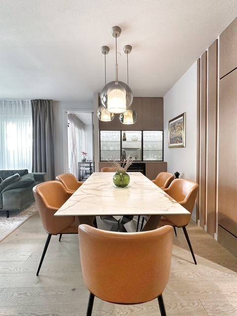 Na vrlo popularnoj lokaciji, u najljepšem dijelu Trešnjevke, prodaje se moderan četverosoban stan ukupne bruto površine 126m2. Ovaj moderni i prostrani stan ukupne je stambene obračunske površine 111m2 sa 4 sobe nudi vrhunsku udobnost stanovanja, te objedinjuje stil opremljenog prostora s idealnim rasporedom prostorija sa terasom veličine 10m2. Za obitelji to znači maksimalnu fleksibilnost: roditeljski dio i dječji odnosno gostinski dio jasno su odvojeni jedno od drugog. Stan se sastoji od: - prostranog ulaznog prostora opremljenim ugradbenim odmarima - tri spavaće sobe, dvije manje i jedne veće sa walk in ormarom - dvije kupaonice - prostranog dnevnog boravka i blagovaonice - vrhunski opremljene kuhinje s izlazom na terasu - pomoćne prostorije sa perilicom i sušilicom rublja i prostora za odlaganje Ovdje dobivate nekretninu sa promišljenim životnim konceptom, kao i solidnu investiciju na savršenoj adresi za stanovanje. Stanu pripada: - spremište na -1 etaži zgrade - dvije garaže ukupne kvadrature 30m2 (svaka veličine 15m2) RASPOLOŽIVOST: stan je raspoloživ unutar 30 dana ili prije ovisno o potrebi VLASNIŠTVO: zgrada je upisana u zemjišne knjige, bez upisanih tereta, te je moguća kupnja putem kredita banke DOZVOLE: zgrada ima uporabnu dozvolu.