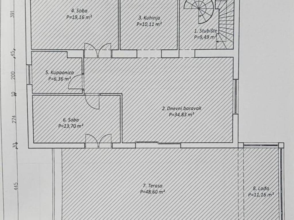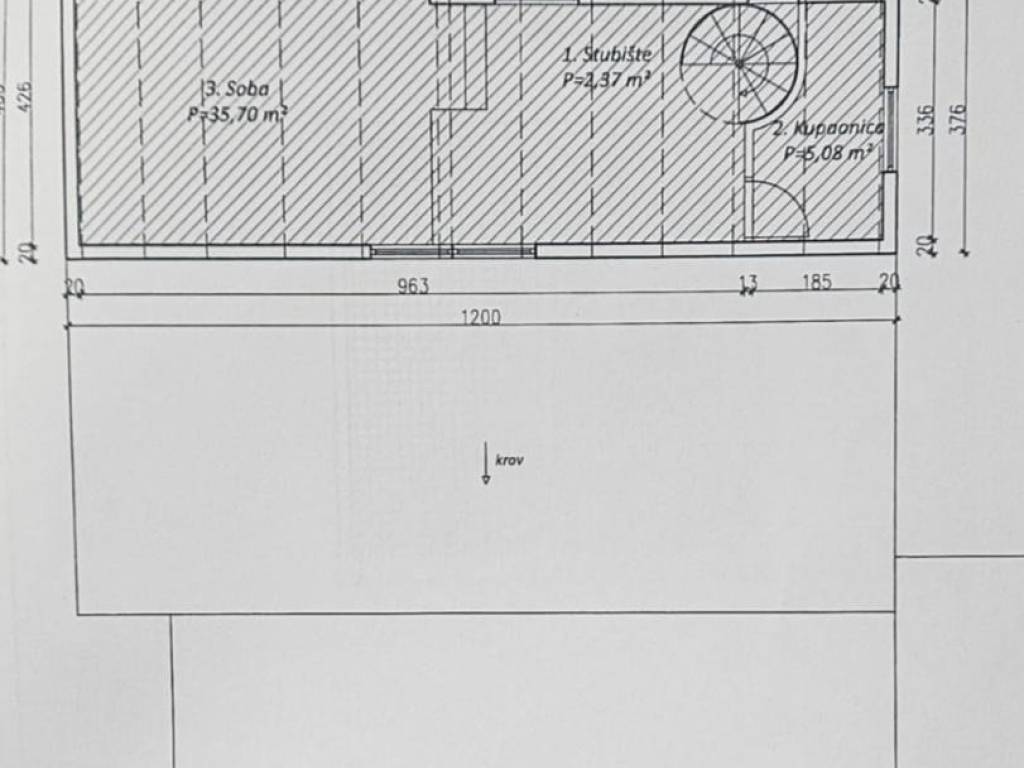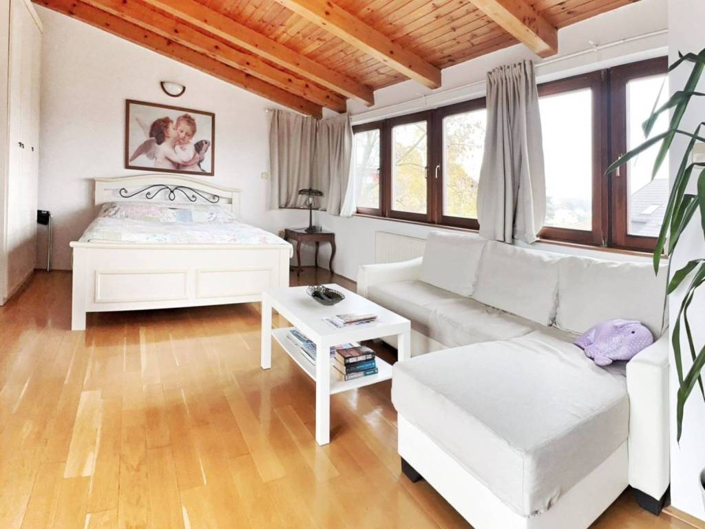 Prostrani stan-penthouse s velikom terasom u manjoj stambenoj zgradi (vili) smještenoj na atraktivnoj lokaciji na Pantovčaku u Bulatove ulice. Zgrada je građena 1937. godine, s okomitim armiranim serklažama i armiranim gredama u podovima. Etaža na kojoj je stan je nadogradnja koja je rađena 1997. godine. Zgrada nije imala nikakvih oštećenja u potresu i ima zelenu naljepnicu. Zgrada je smještena na parceli veličine oko 600 m2, , okružena zelenilom i manjim obiteljskim kućama i zgradama. Vila se sastoji od ukupno 4 stana. Stan koji se prodaje obračunski je veličine 150 m2, a sastoji se od predsoblja iz kojeg se penje u stan na višoj etaži, velikog ostakljenog dnevnog boravka s blagovaonom i velike terase veličine oko 50m2, velike radne -spavaće sobe s bibliotekom, velike master sobe, velike kupaone, odvojeno kuhinje, te na drugoj etaži iznad još apartmana koji se sastoji od dnevnog prostora povezanog sa spavaćim, manje kuhinje i kupaone. Stan je dobrom stanju, ali potrebno mu je uređenje i možda prilagodba prostora . Prostor ima visoke stropove 2,80 m i puno prozora i jako puno svjetla i gotovo sa svih strana gleda na zelenilo i ima jako lijep pogled. VLASNIŠTVO: stan je upisan u zemljišne knjige i moguća je kupnja putem kredita banke. RASPOLOŽIVOST: stan je raspoloživ i useljiv u roku 30 dana. PARKING: veliko parkirno mjesto pred ulazom u stan zaštićeno pomičnim vratima veličine 15 m2. GARAŽA: uz stan se može kupiti i garaža veličine oko 17m2. Ona je upisana kao posebna nekretnina, u blizini zgrade je. Cijena garaže je 50.000 Eura.