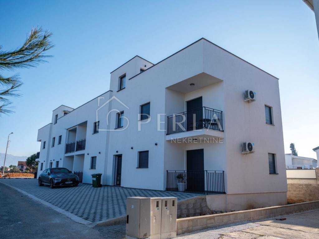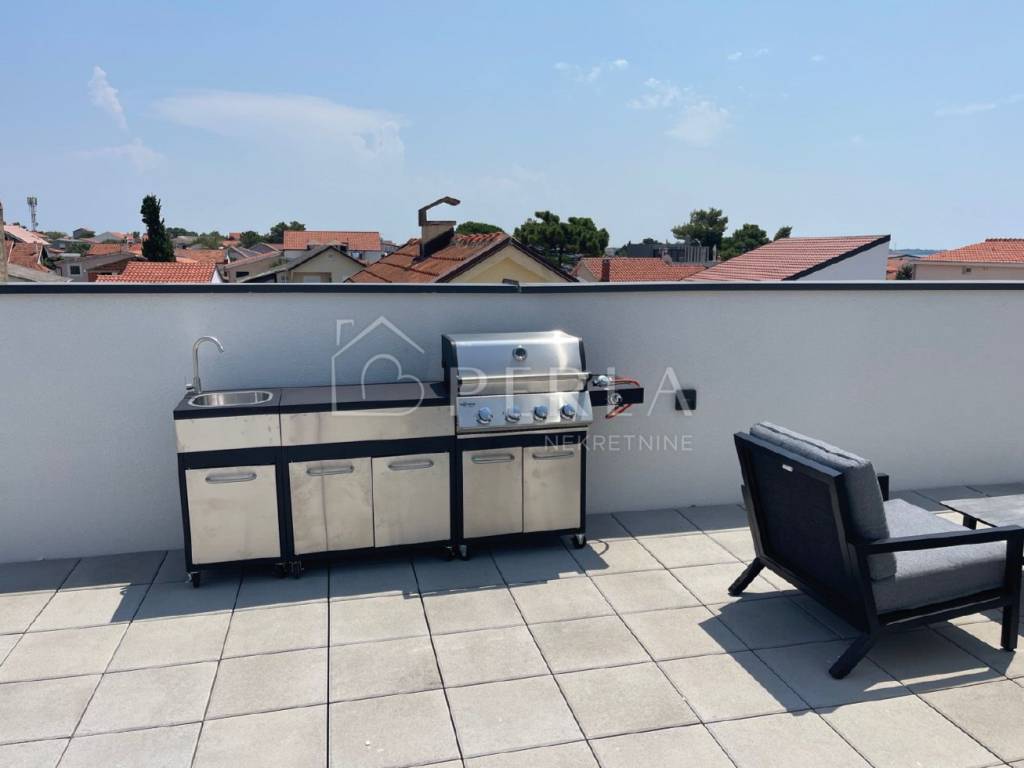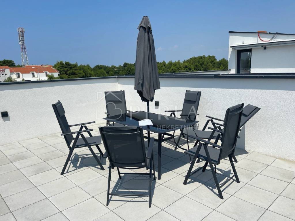 Posebna prednost stana je zajednička krovna terasa s otvorenim panoramskim pogledom na more i planinu Velebit.