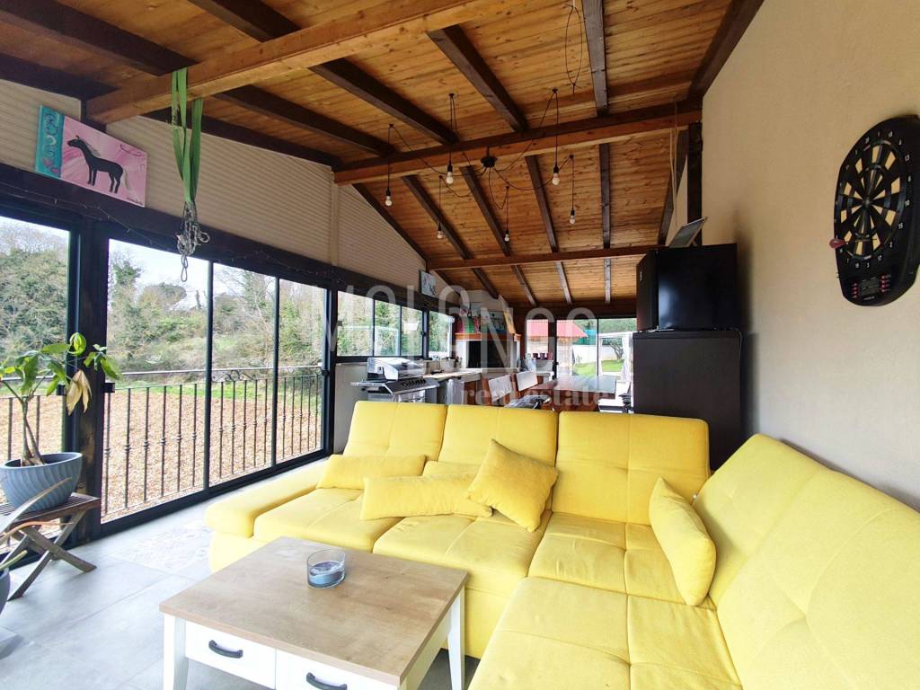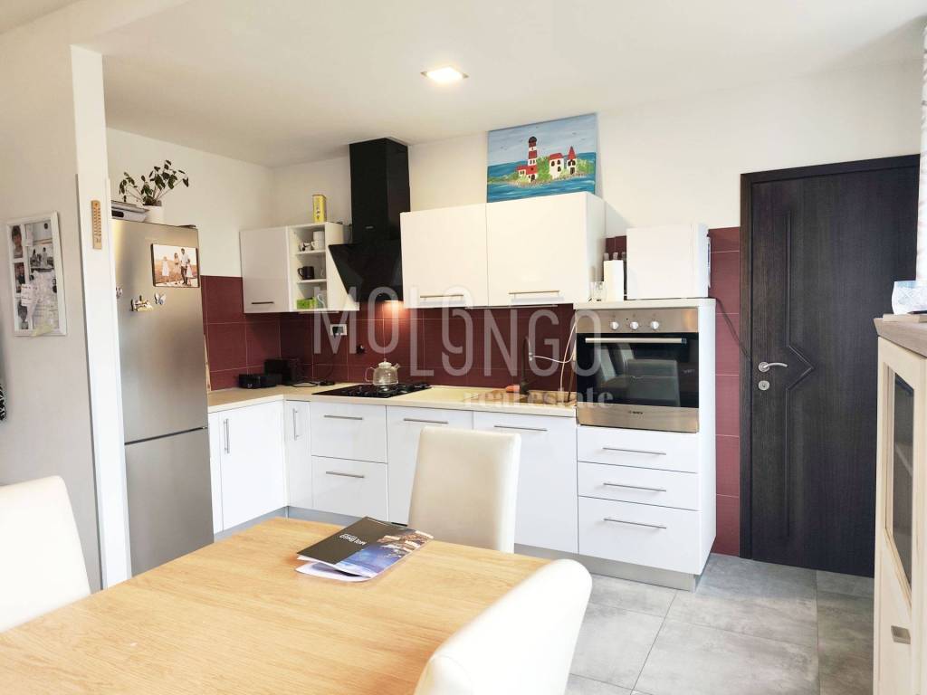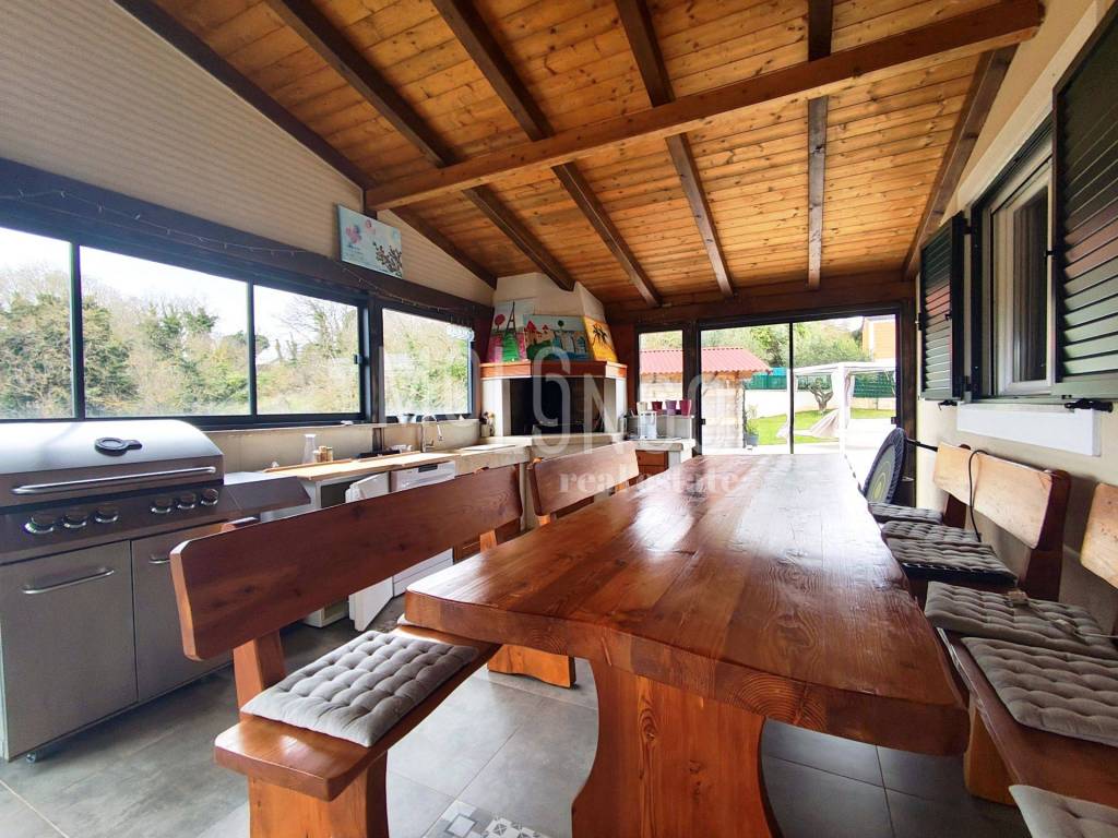 Kuća je funkcionalno raspoređena te se sastoji od prostranog open space prostora koji objedinjuje dnevni boravak, kuhinju i blagovaonicu, s izlazom na veliku terasu. Terasa se nastavlja na zatvoreni prostor s ljetnom kuhinjom i kaminom – idealno mjesto za druženja i uživanje tijekom cijele godine.