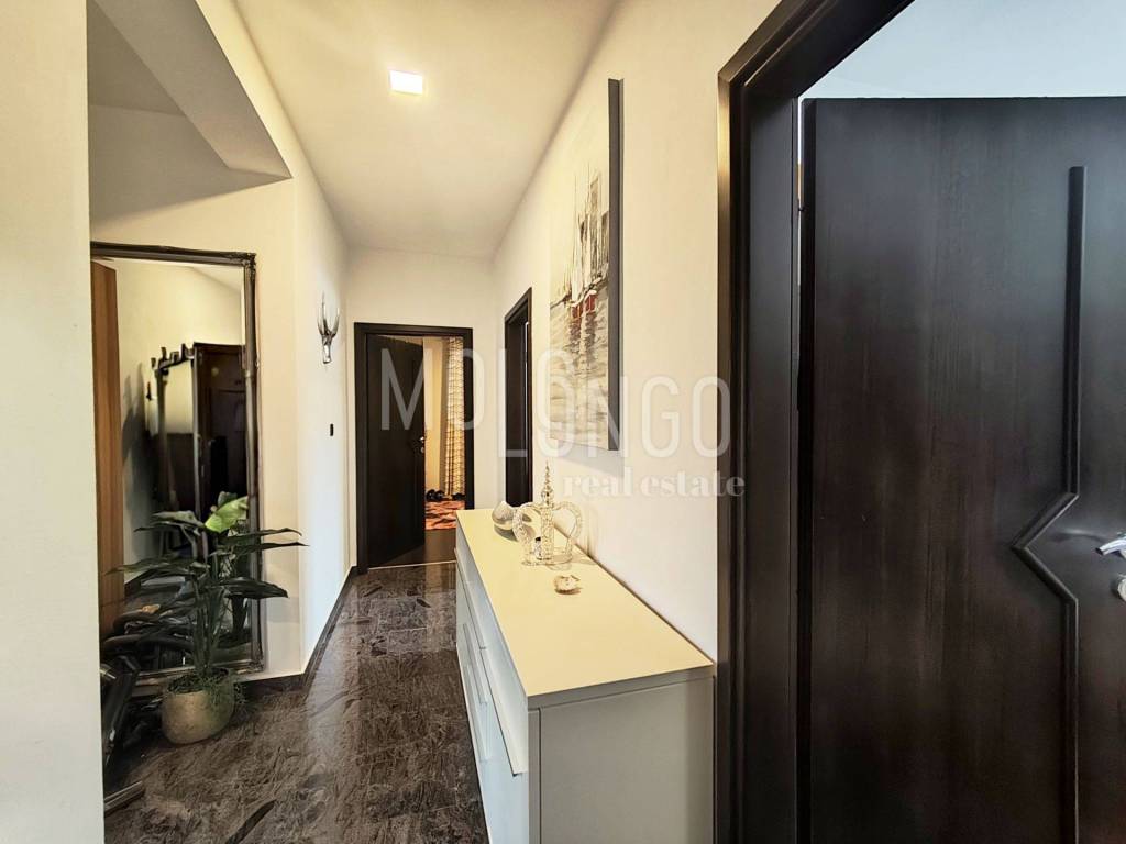 Na uređenoj okućnici nalazi se bazen s elektrolizom i grijanom vodom, dok su zelene površine opremljene sustavom automatskog navodnjavanja.