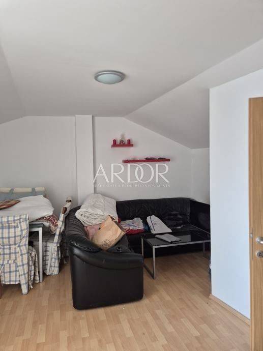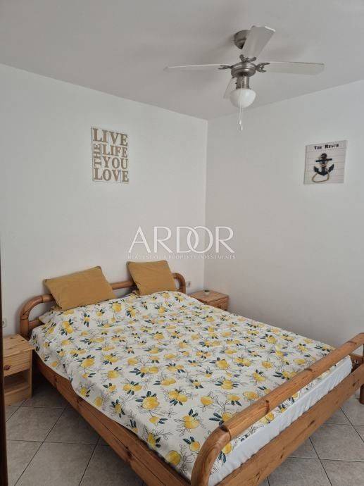 Nekretnina se proteže kroz tri etaže i zahvaljujući rasporedu pruža mogućnost odvajanja u tri zasebne stambene jedinice. U prizemlju se nalazi ulazno dvorište, kuhinja s blagovaonicom, dnevni boravak, kupaonica i ostava. Prvi kat sastoji se od dvije spavaće sobe, od kojih jedna ima izlaz na balkon, dnevnog boravka i kupaonice. Na drugom katu smješten je stan koji uključuje spavaću sobu, kuhinju s blagovaonicom i kupaonicu, a iz njega se izlazi na prostranu terasu od 30 m² s otvorenim pogledom na more. Kuća se prodaje potpuno namještena.