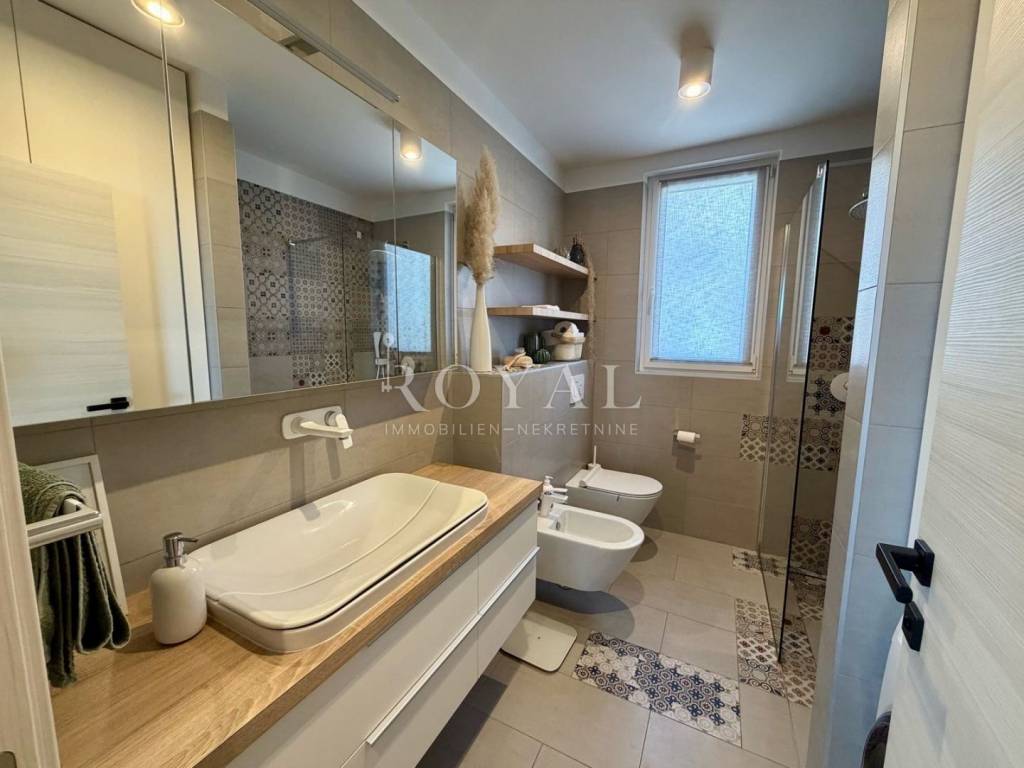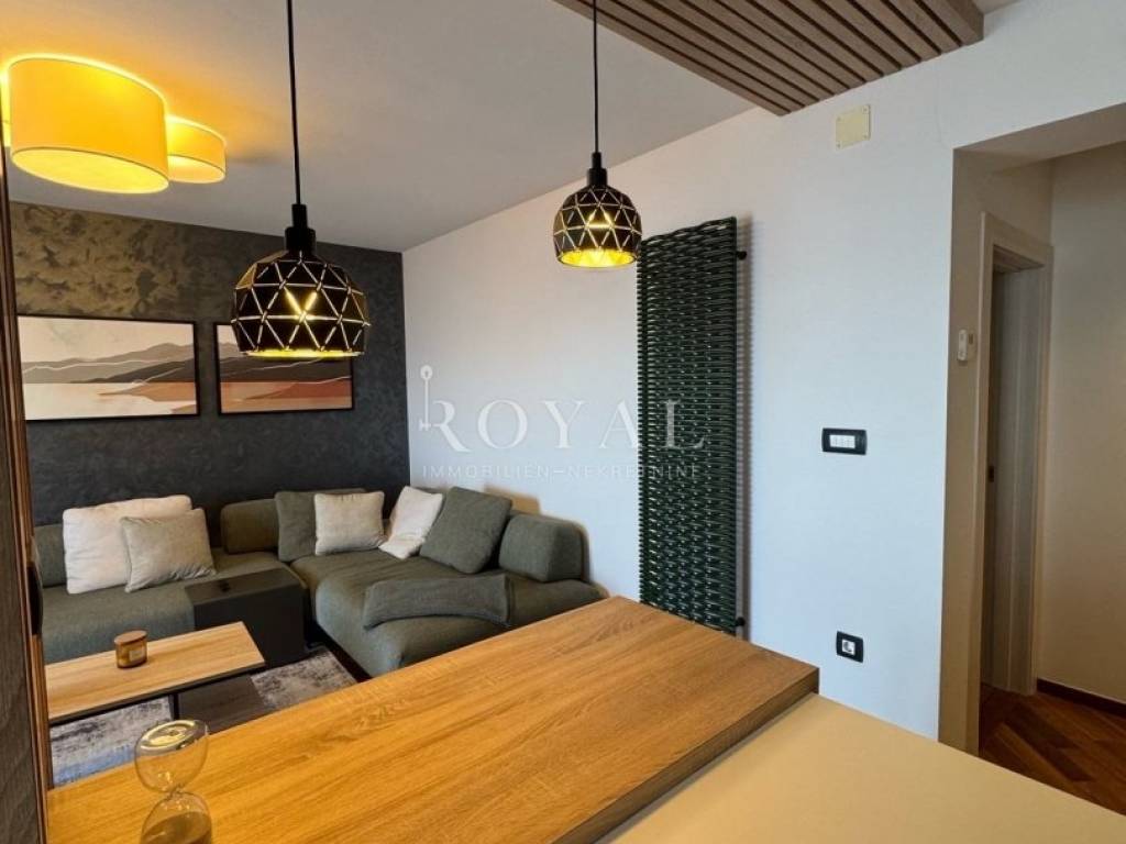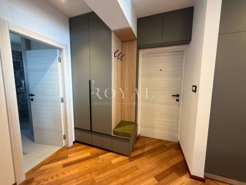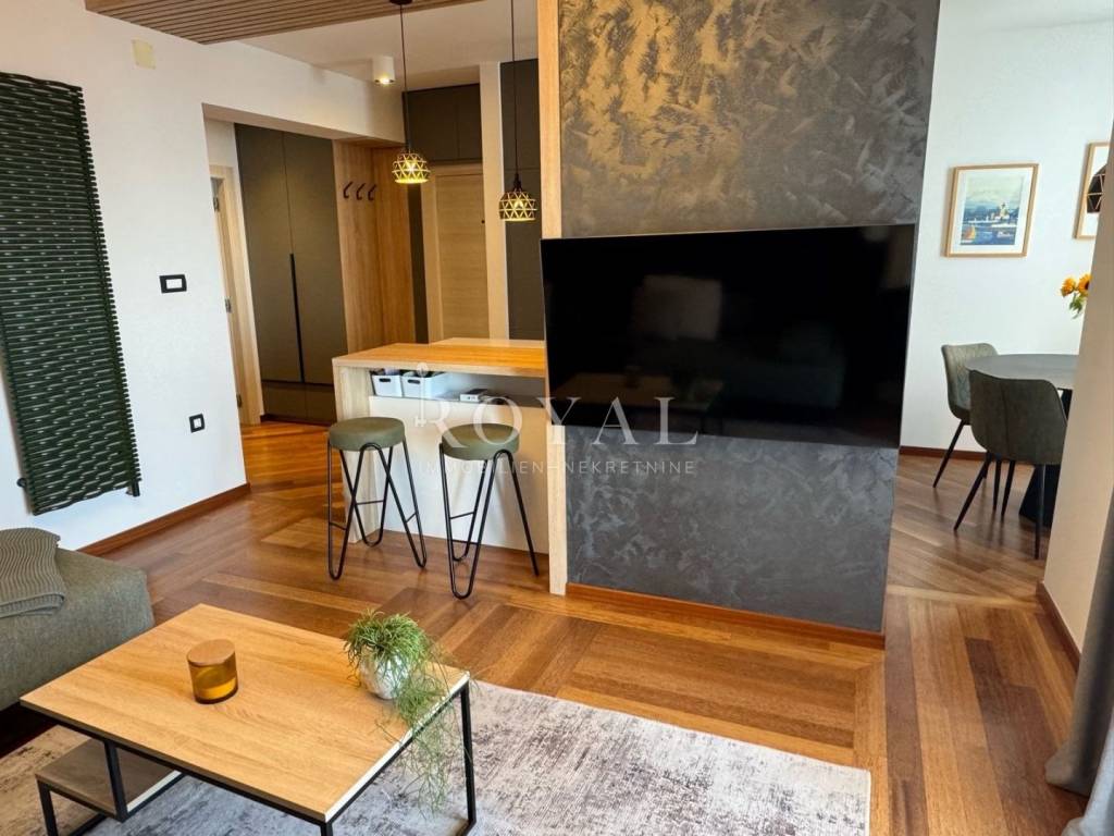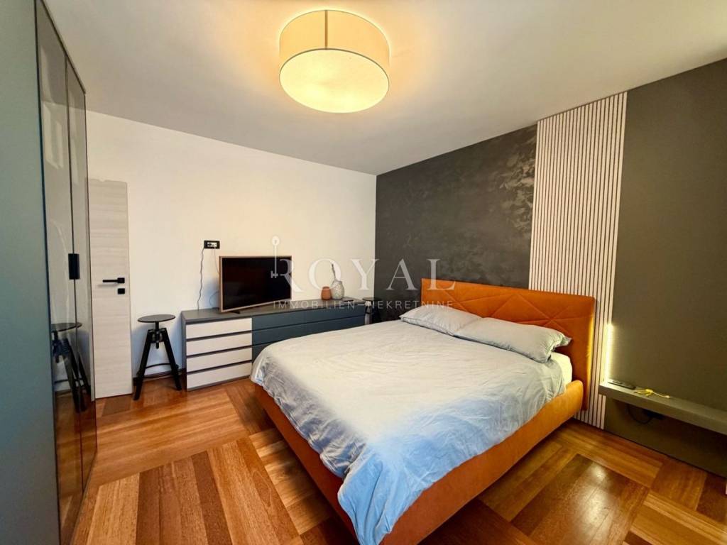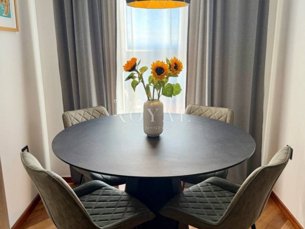 Zahvaljujući južnoj orijentaciji, stan je tijekom cijelog dana okupan prirodnim svjetlom, što dodatno naglašava njegovu toplinu i ugodnu atmosferu. Interijer je uređen s posebnom pažnjom na detalje, kombinirajući funkcionalnost i suvremeni dizajn.