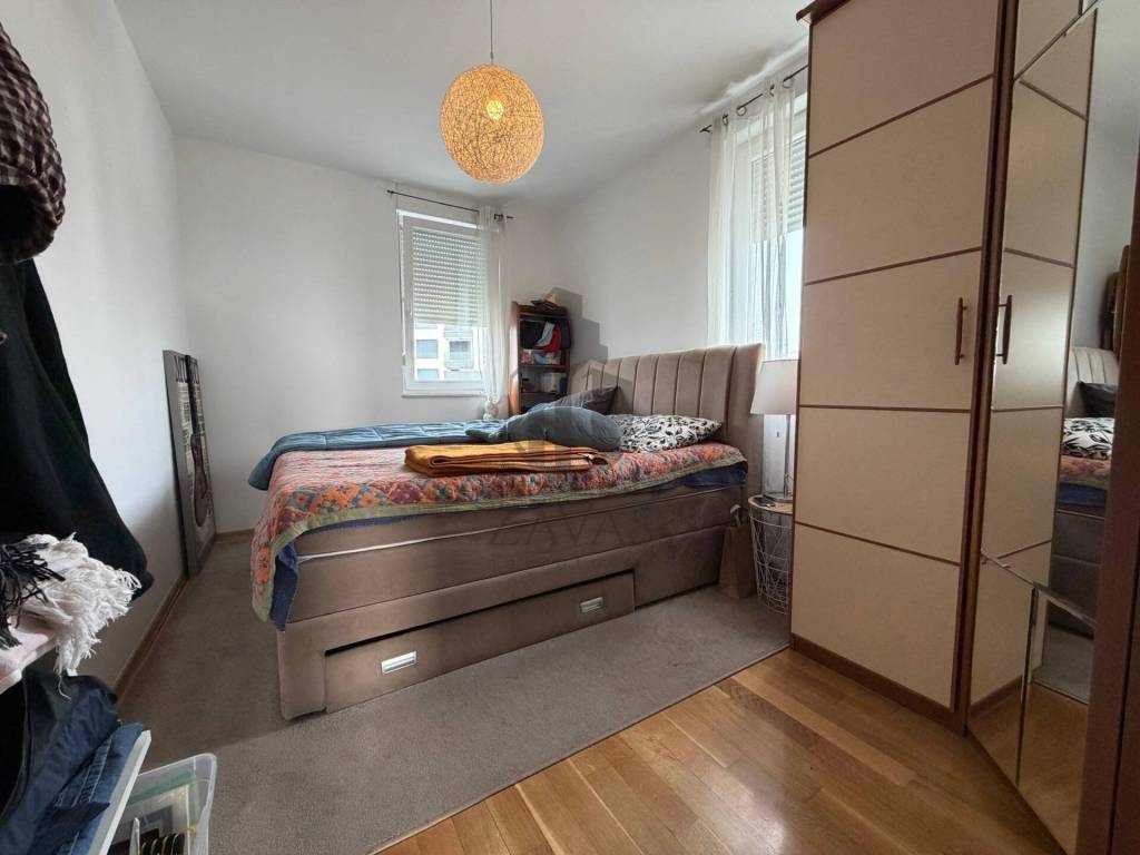 Stan je funkcionalnog rasporeda te se sastoji od ulaznog hodnika, dnevnog boravka s izlazom na prostranu loggiu, kuhinje, dvije spavaće sobe, kupaonice i zasebnog WC-a.