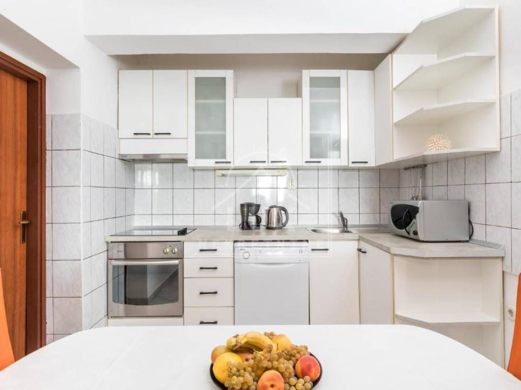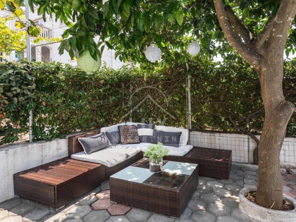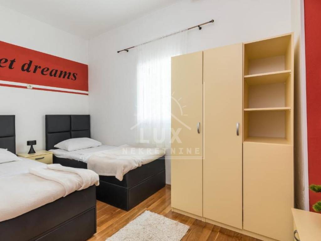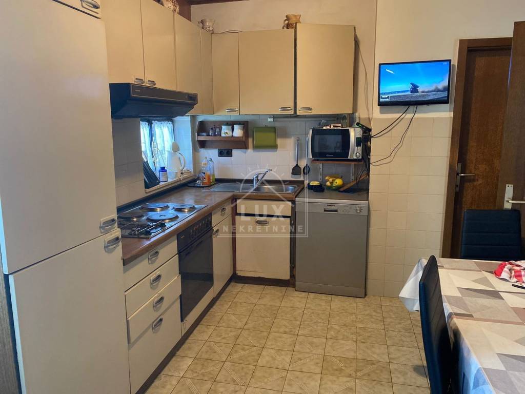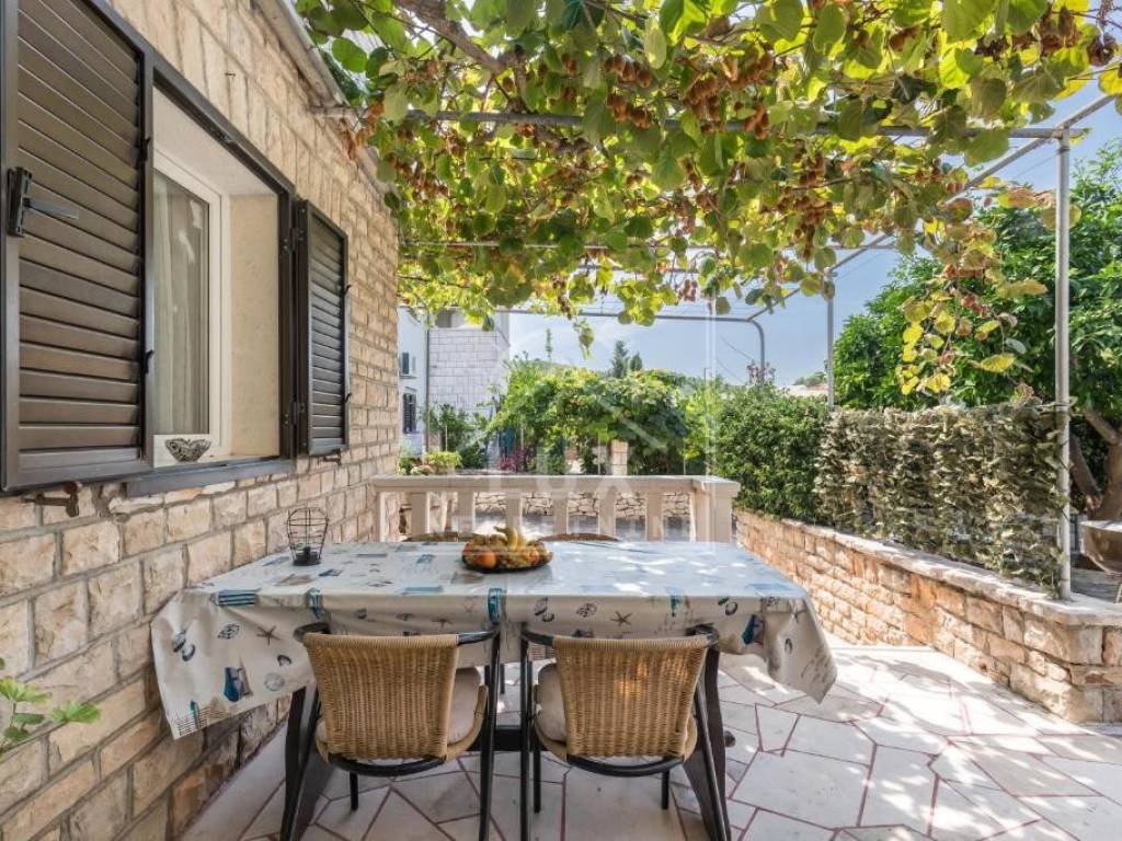 Nalazi se na okućnici pov. 544 m2, cca 500 metara od mora pješice, odnosno 250 metara zračne linije.