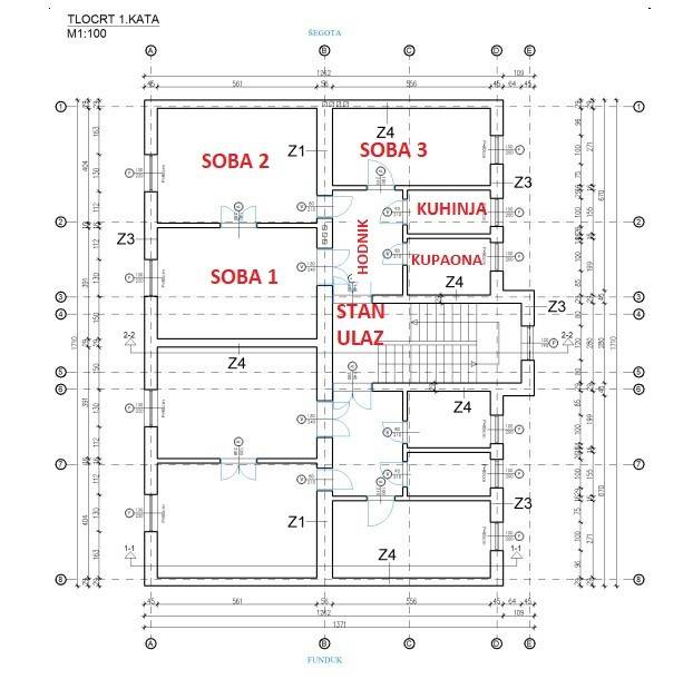 Prodaje se potpuno renoviran 3-soban stan površine 78,71 m2, smješten na 1. katu povijesne stambene zgrade iz 1898. godine.