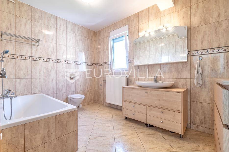 Zagreb, Šestinski vrh - Gornje PrekrižjeKuća površine 240 m², novije gradnje, smještena na odličnoj, mirnoj lokaciji s otvorenim pogledom na grad Zagreb i Medvednicu.Ispred vile uređena je okućnica s vrtom, garažom s direktnim pristupom u kuću te parkirnim mjestima za dva do tri automobila.Sve etaže povezane su unutarnjim stubištem.U prizemlju se nalaze prostrani ulazni foaje, tri spavaće sobe i dvije kupaonice.Na prvom katu nalazi se prostrani dnevni boravak i blagovaonica otvorenog tlocrta s izlazom na veći balkon i pogledom na grad, jedna spavaća/radna soba, kupaonica i zaseban toalet.Unutarnje stepenište vodi na drugu etažu s krovnom terasom, s koje se pruža fantastičan panoramski pogled.Vila je kvalitetne gradnje, korišteni su vrhunski materijali i oprema. Odvojeno etažno plinsko grijanje za svaku etažu, PVC stolarija.Nalazi na atraktivnoj lokaciji u blizini javnog prijevoza i trgovina, te je svega nekoliko minuta vožnje do svih sadržaja potrebnih za kvalitetan obiteljski život.Za sve dodatne informacije stojimo na raspolaganju.... Više na eurovilla.hr, ID: 213739