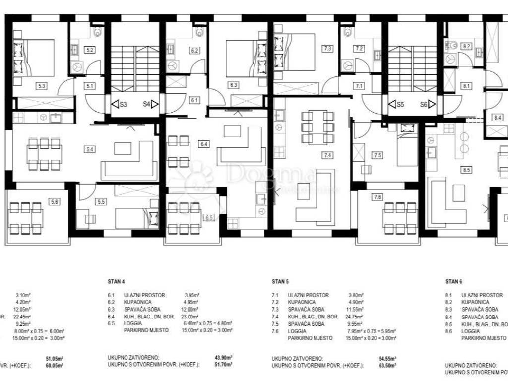 Ukupno s otvorenim površinama (+koef.): 60,05 m