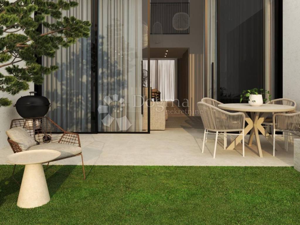 Prizemlje je površine 56,65 m2 i sastoji se od open space dnevnog boravka s izlazom na terasu i vrt, te blagovaonice, kuhinje i gostinjskog wc-a. Na prvom katu površine 34,88 m2, nalaze se dvije spavaće sobe, kupaonica i dnevni boravak. U potkrovlju površine 37,97 m2 smjestila se master spavaća soba sa kupaonicom, walk in ormar, te vanjski prostor za opuštanje.