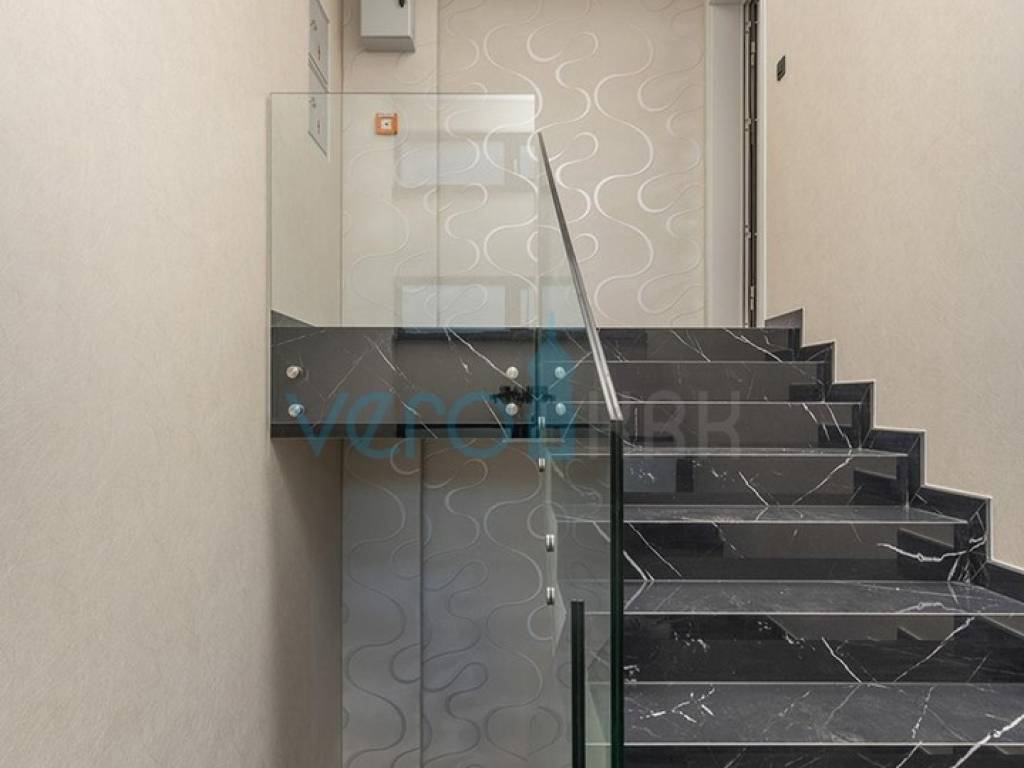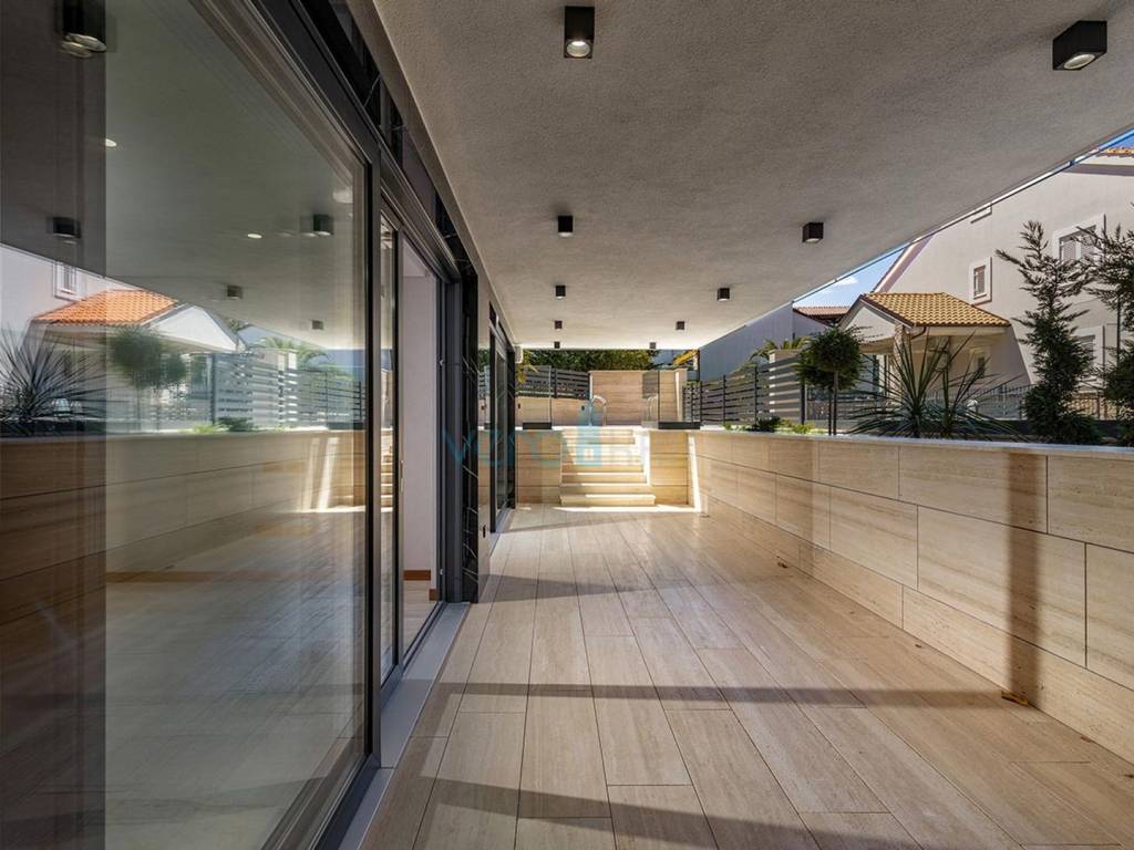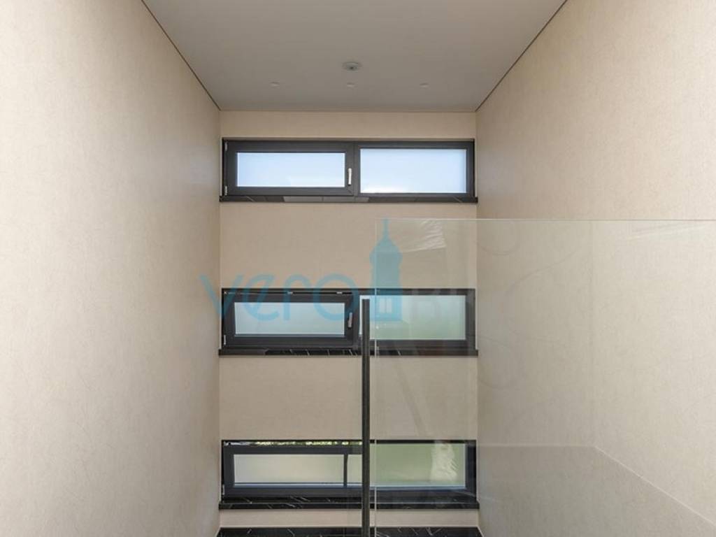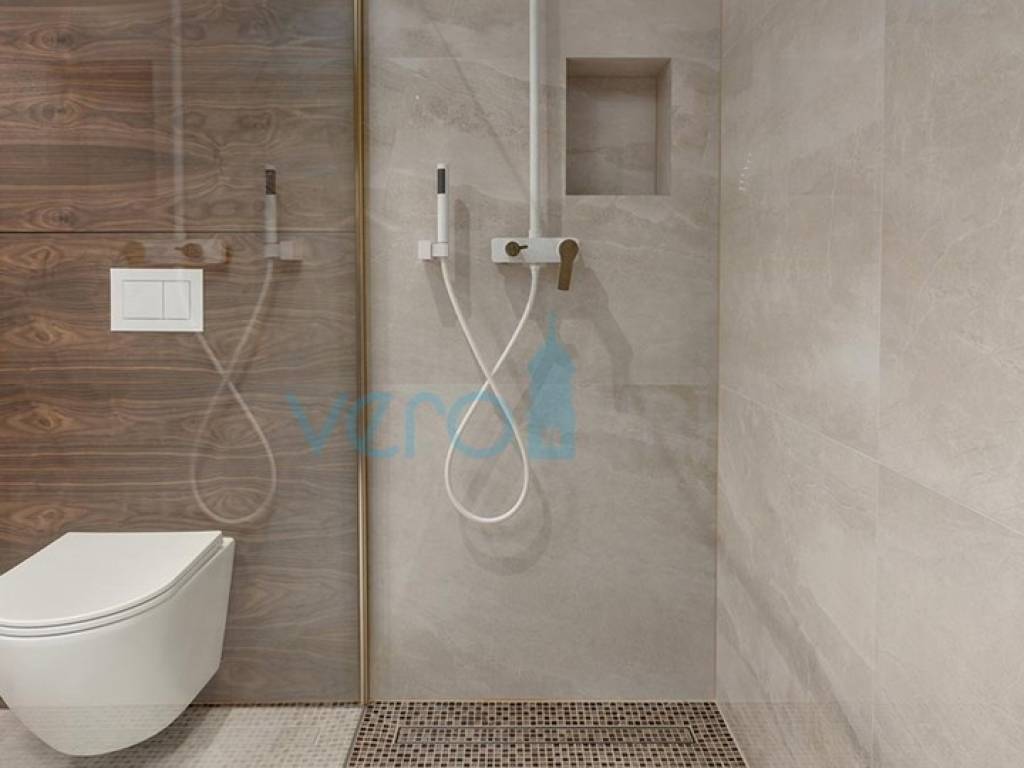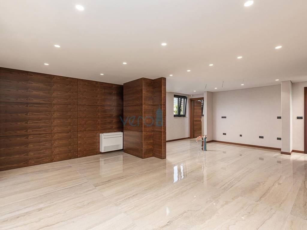 Malinska, na 150m do mora, nalazi se unikatno uređen luksuzni stan 100,38 m2 u vprizemlju moderne zgrade sa tri stana, sastoji se od otvorenog dnevnog boravka sa kuhinjom i blagovaonicom, dvije prostrane spavaće sobe, kupaonice. Iz dnevnog boravka je izlaz na terasu od 27 m2. Ovom stanu pripada dio okućnice od 102 m2 na kojem se nalazi bazen od 15 m2 te dva parkirna mjesta od 27,50 m2. Kroz cijeli stan je provedeno podno grijanje, dok je hlađenje hlađenje mitsubishi parapetnim unutarnjim jedinicama u svakoj prostoriji. Podne obloge su od porculanske keramike, spušteni stropovi sa ugrađenom rasvjetom, unutarnja stolarija orah drvo talijanskog proizvođača Diere, vanjska stolarija stolarija su velike podizno klizne stijene. Konstrukcija zgrade je armirani beton, fasada objekta je od ventilirajućeg rimskog kamena Travertin, dok su ulazna vrata u zgradu od poznatog proizvođača Inoterm.