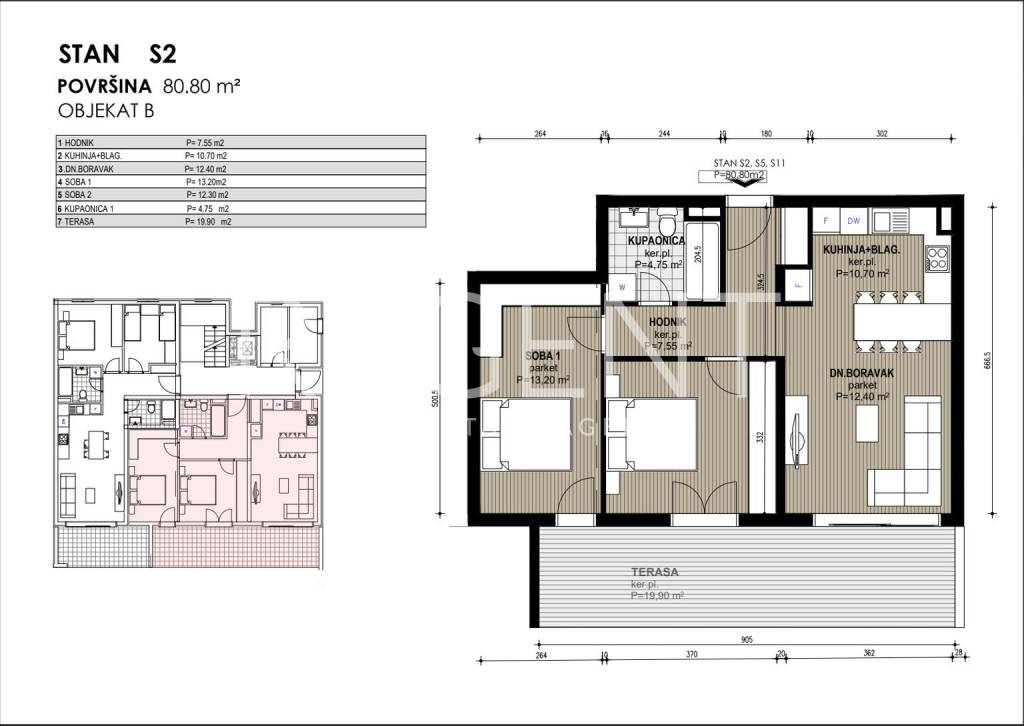 Dvosoban stan nalazi se u prizemlju zgrade u novom stambenom kompleksu u mjestu Blato na Makarskoj rivijeri, svega oko 150 metara od mora. Stan predstavlja odličan izbor za život, odmor ili kao investicija za turistički najam. Ukupne neto površine 80.80 m², stan se sastoji od dnevnog boravka s kuhinjom i blagovaonicom, dvije spavaće sobe te kupaonice. Dnevni boravak povezan je s terasom površine od 19.90 m², a stan je orijentiran prema jugu, što omogućuje puno prirodnog svjetla tijekom dana. Stan se nalazi u sklopu modernog projekta koji obuhvaća tri manje stambene zgrade s ukupno 30 apartmana. U standardu opreme predviđena je keramika formata 60 × 60 cm kroz cijeli stan, kvalitetna PVC stolarija s dvostrukim staklom te velike staklene stijene prema lođi. Na većim otvorima ugrađuju se električne rolete, dok su na manjim prozorima ručne. Grijanje i hlađenje riješeno je putem klima sustava, a u kupaonicama je predviđen zidni električni radijator. Stanovi imaju protuprovalna ulazna vrata, a kupaonice kvalitetnu sanitarnu opremu uz planirane slavine proizvođača Grohe. Zgrade su opremljene ORONA dizalima te video portafon sustavom proizvođača 2N. Blato je mirno mjesto na južnom dijelu Makarske rivijere, poznato po dugim šljunčanim plažama i kristalno čistom moru. Okruženo je borovom šumom i maslinicima te pruža autentičan mediteranski ambijent idealan za odmor ili život uz more. Makarska je udaljena oko dvadeset kilometra, dok se Drvenik s trajektnom lukom za otok Hvar nalazi se na manje od deset kilometara vožnje, a u samom Blatu postoji i mala marina koja omogućuje vez za brodice. U cijenu stana uključeno je vanjsko parkirno mjesto, a stan će biti useljiv u drugom kvartalu 2027. godine. Za više informacija o ovom stanu ili dogovor razgledavanja slobodno nas kontaktirajte.