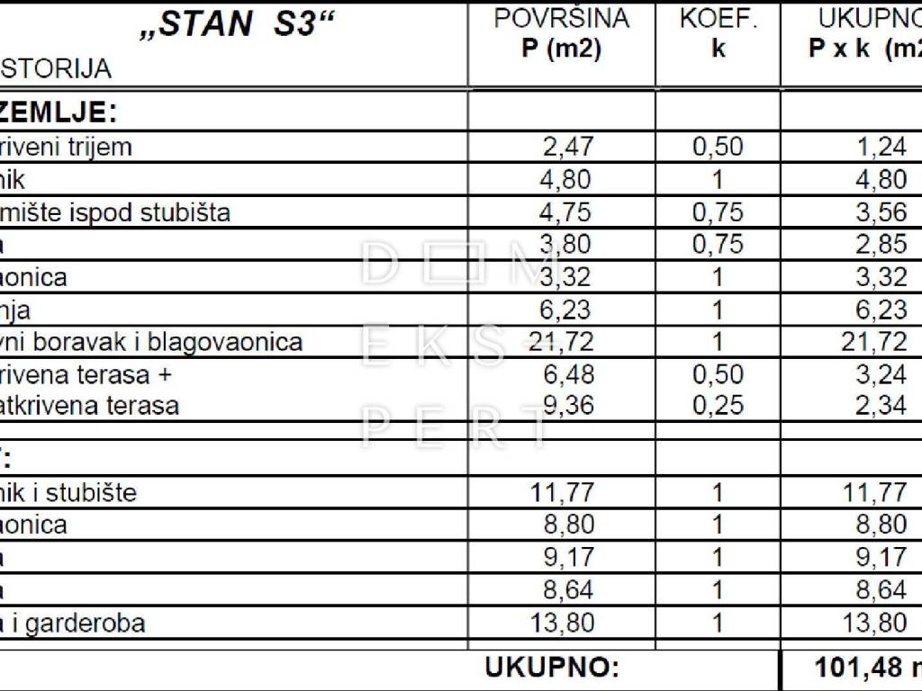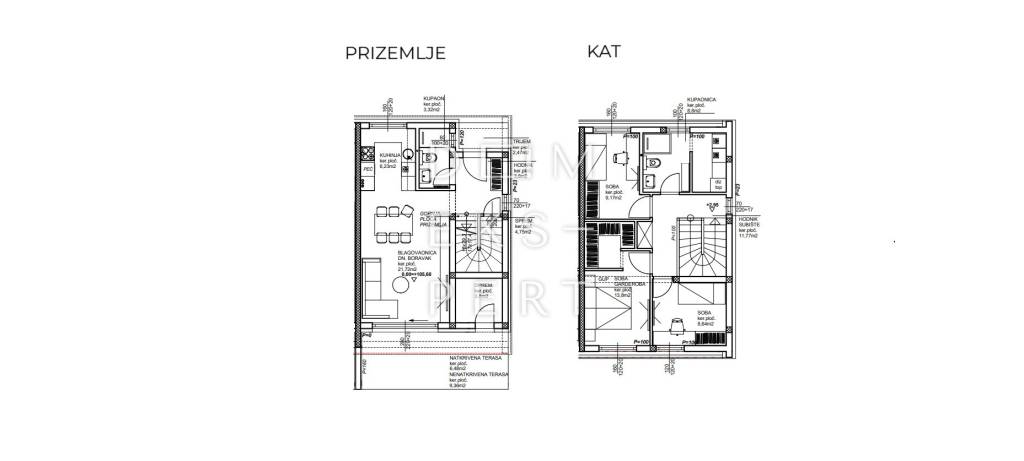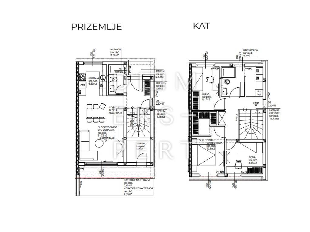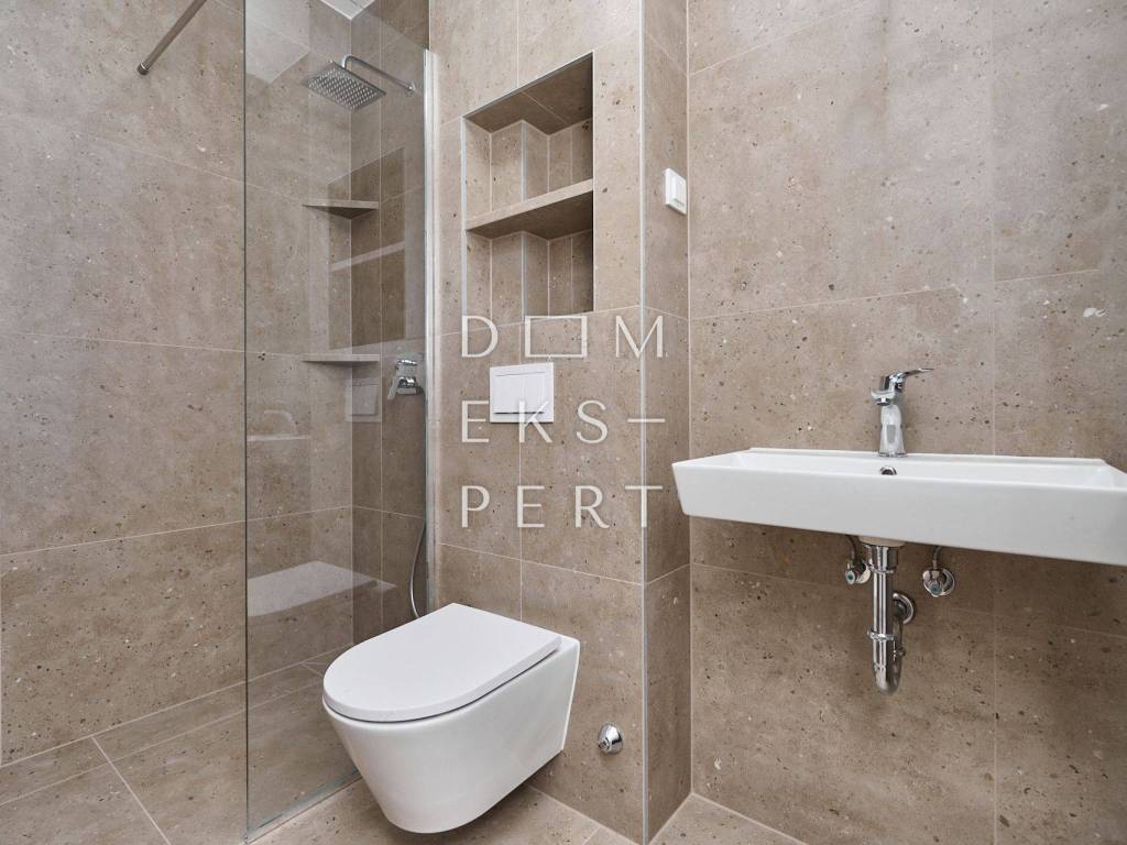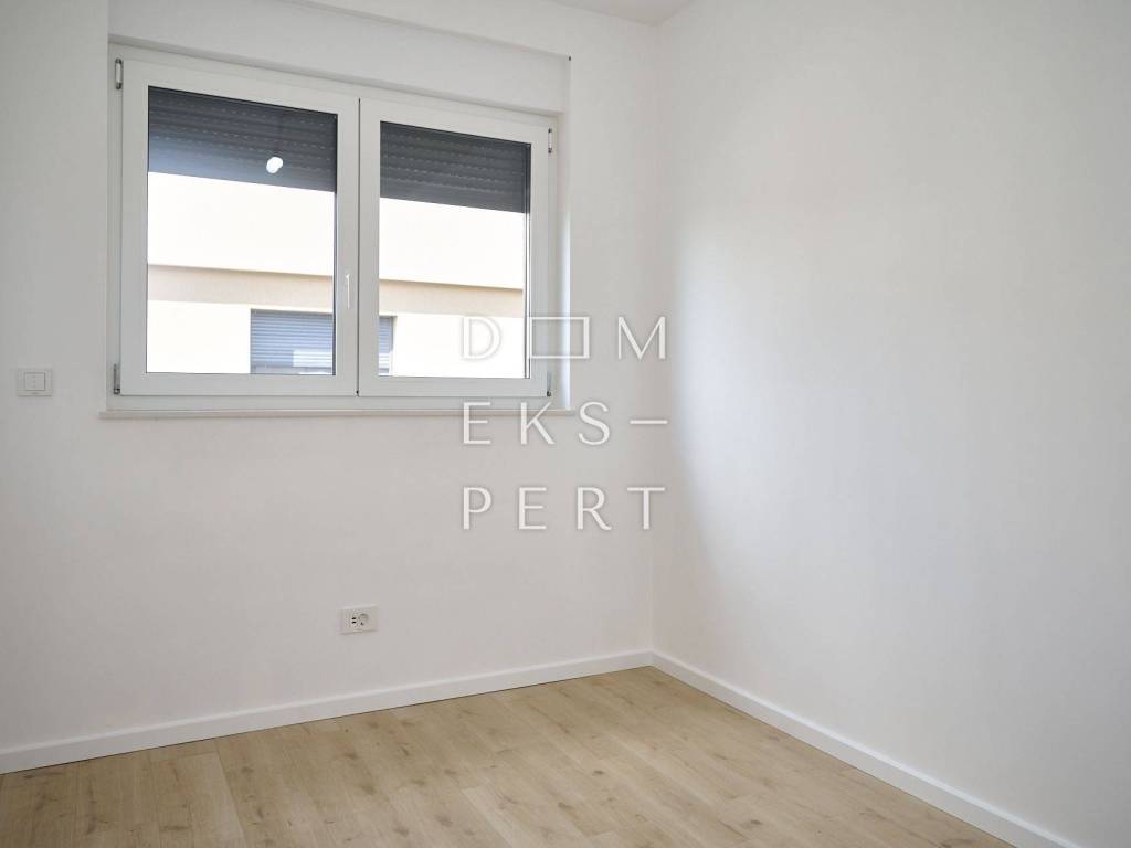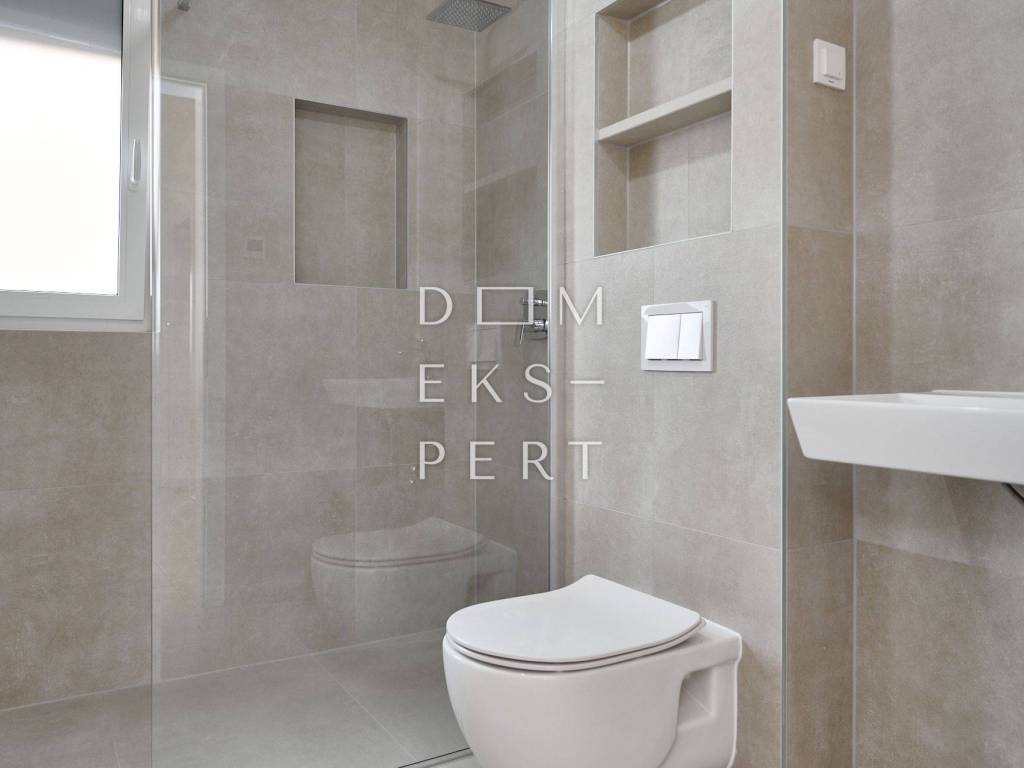 OPREMA: - PVC stolarija s troslojnim IZO staklom te aluminijske rolete na elektro motore i komarnici - fasada: termoizolacijske ploče od EPS-a debljine 15 cm - keramičke pločice 1. klase, kupcima je omogućen odabir keramike - kupaonica opremljena sanitarnim uređajima - podno grijanje preko dizalice topline Vaillant, svaka soba ima termostat - predviđena je priprema za klima uređaj - vanjske jedinice dizalice topline smještene na krovu zgrade - sobna vrata bijele boje - priprema za solarne panele - priprema za električno napajanje automobila kod parkirnih mjesta