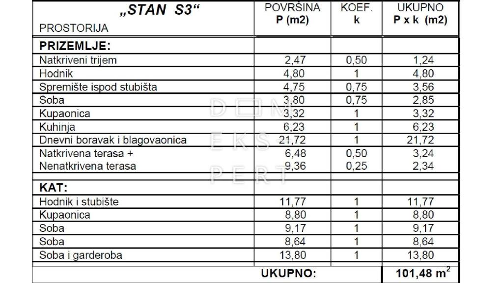 Prodaje se kuća u nizu s vrtom, ukupne površine 120.18 m² u Dugom Selu. U naravi su to dvoetažni stanovi s vrtom i dva parkirna mjesta. Stambena površina iznosi 101.48 m², a sa svim pripatcima (vrt i dva parkirna mjesta) obračunatim po koeficijentima, ukupna površina iznosi 120.18 m².