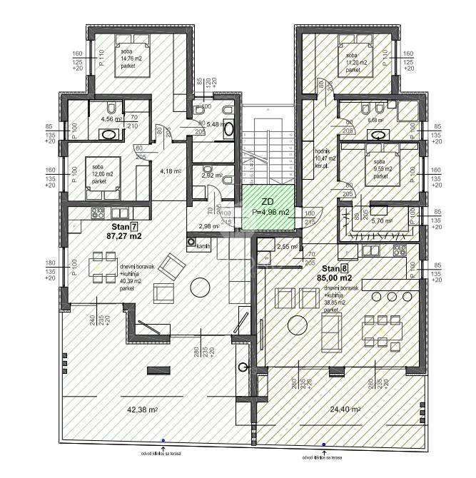 Stan ima i napredan sustav video nadzora i alarma koji se može upravljati putem mobilne aplikacije. U cijenu su uključena dva parkirna mjesta (svako 12,5 m²) i podrum od 5 m². Zgrada je uredno održavana, ima uporabnu dozvolu i etažni elaborat.